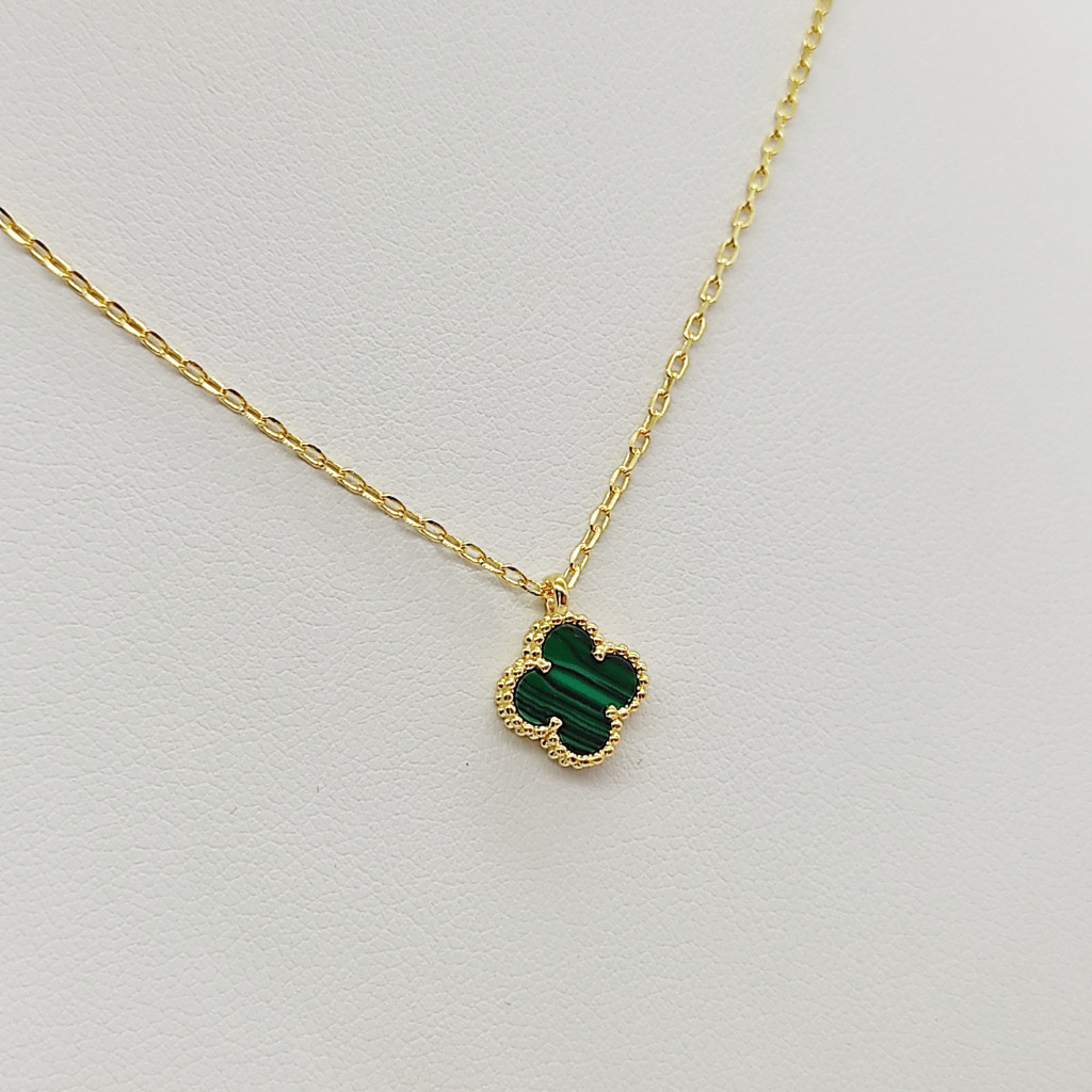 Aranyozott ezüst nyaklánc zöld lóhere medállal