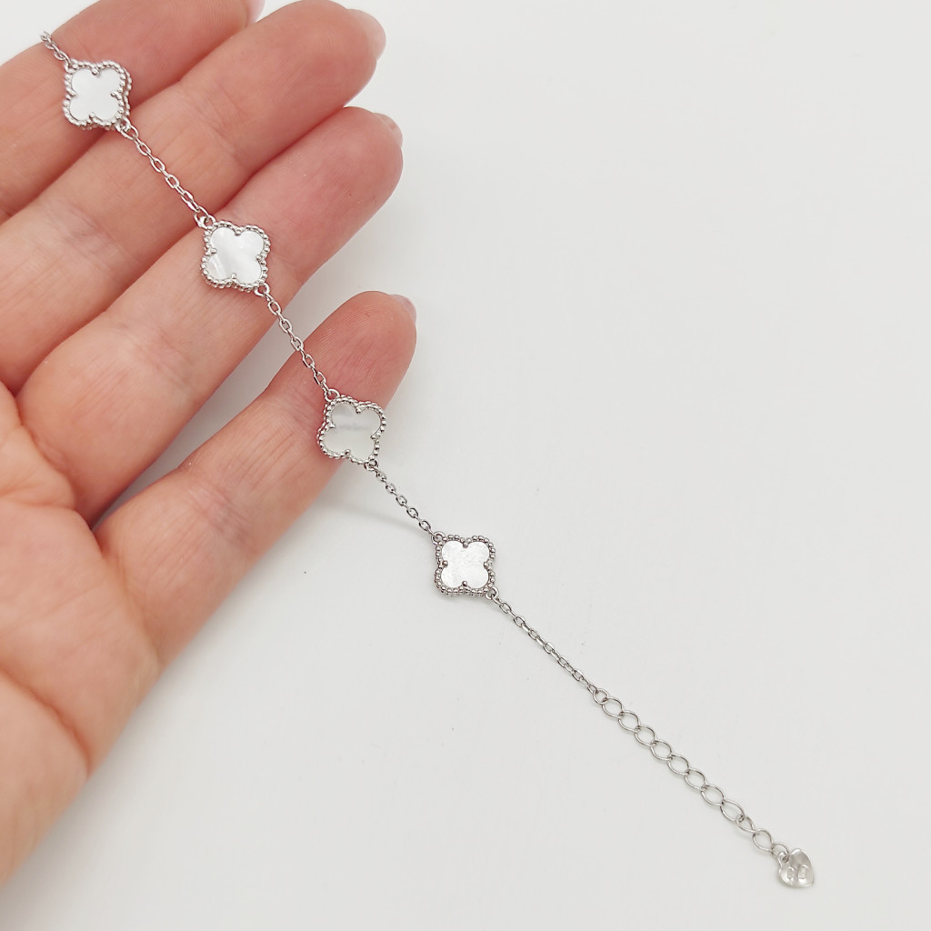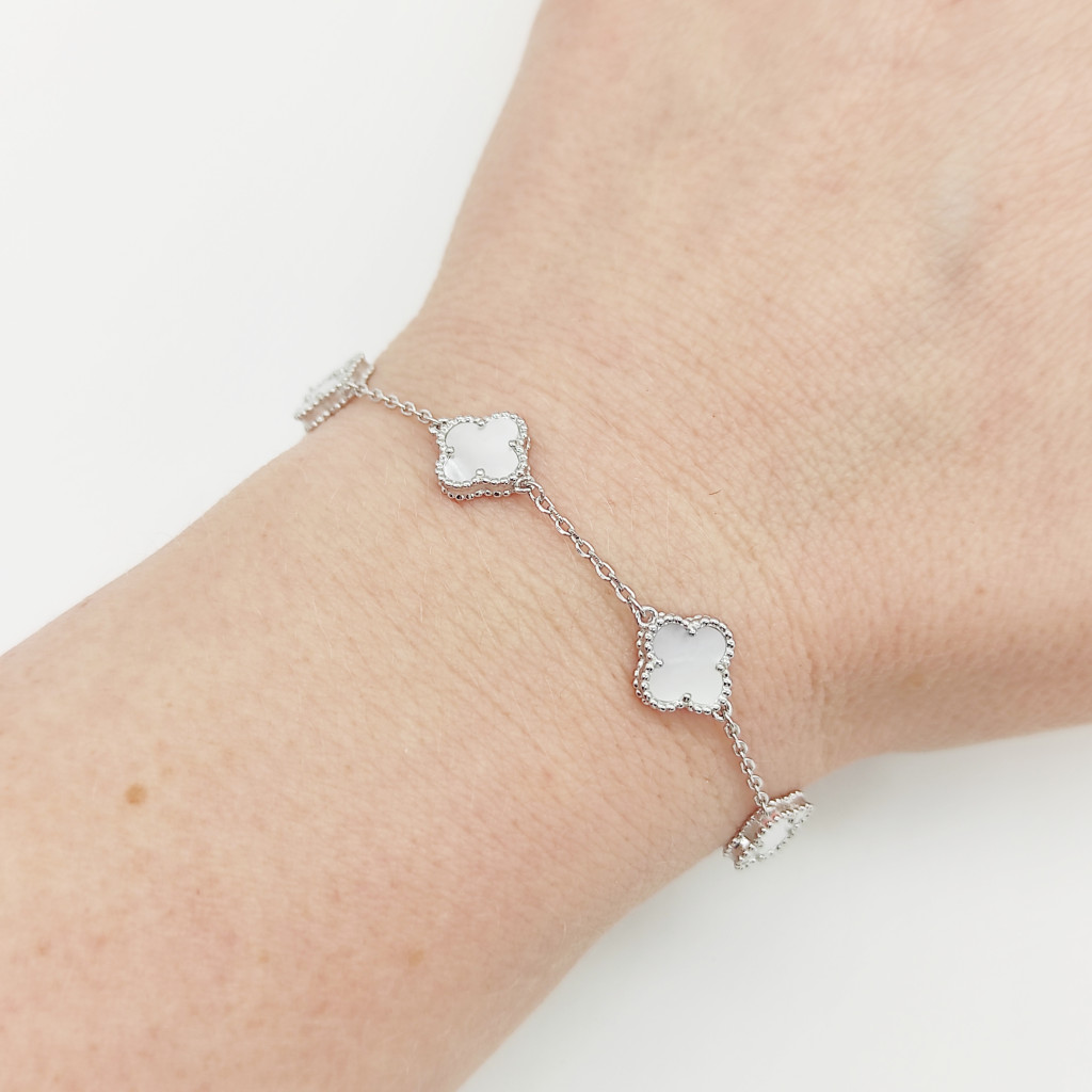 Ezüst 5 lóherés karlánc gyöngyházzal