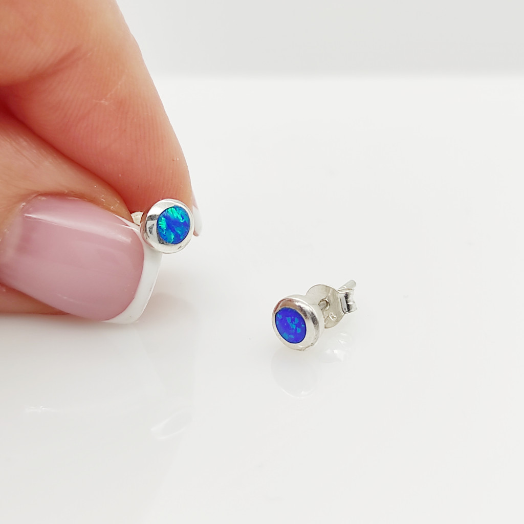 Ezüst apró kék opál köves fülbevaló