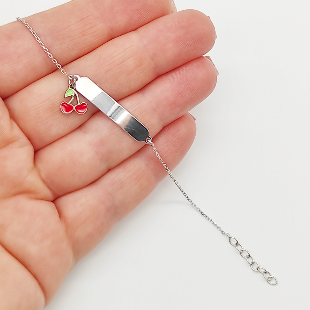 Ezüst cseresznyés gyermek karlánc