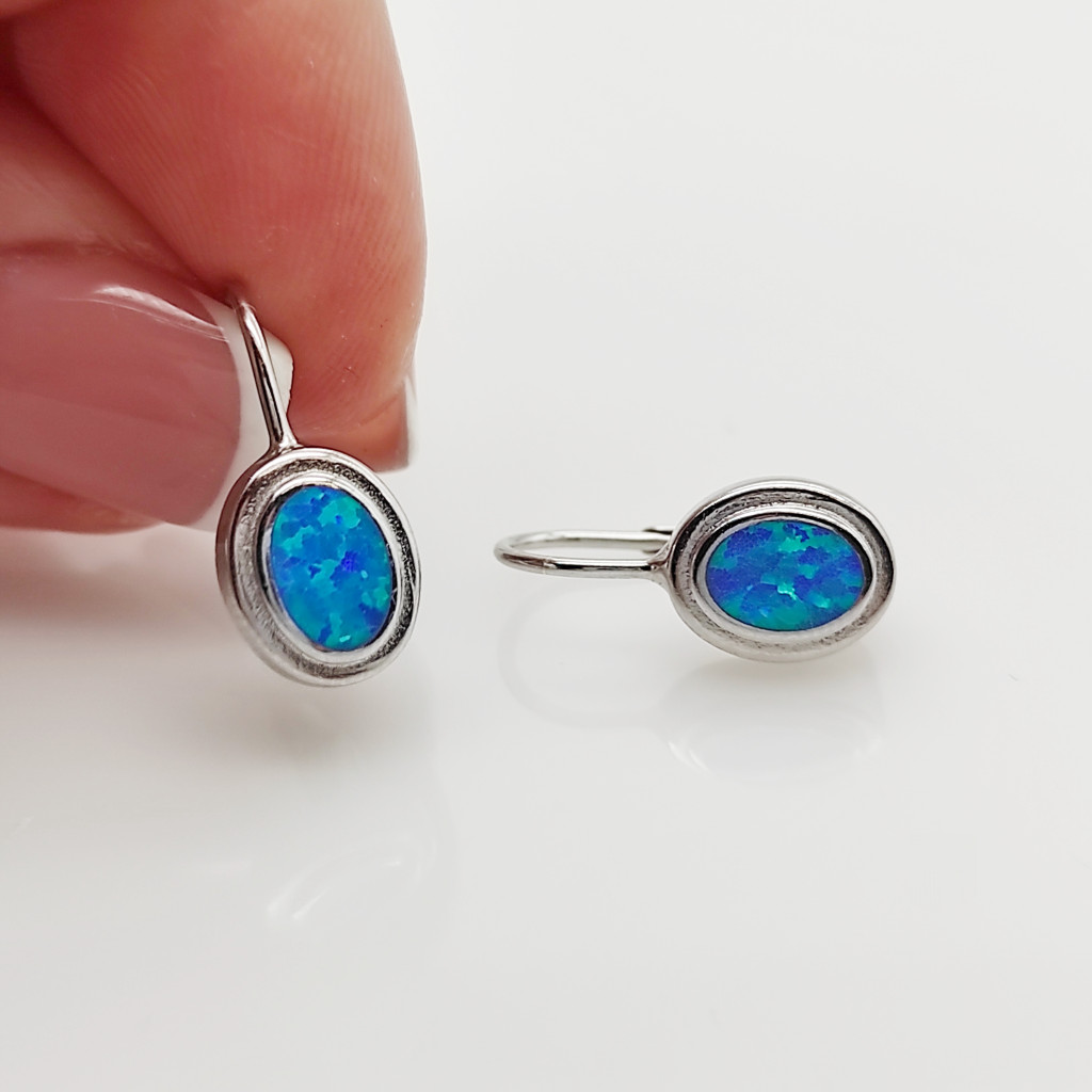 Ezüst fülbevaló kék opállal