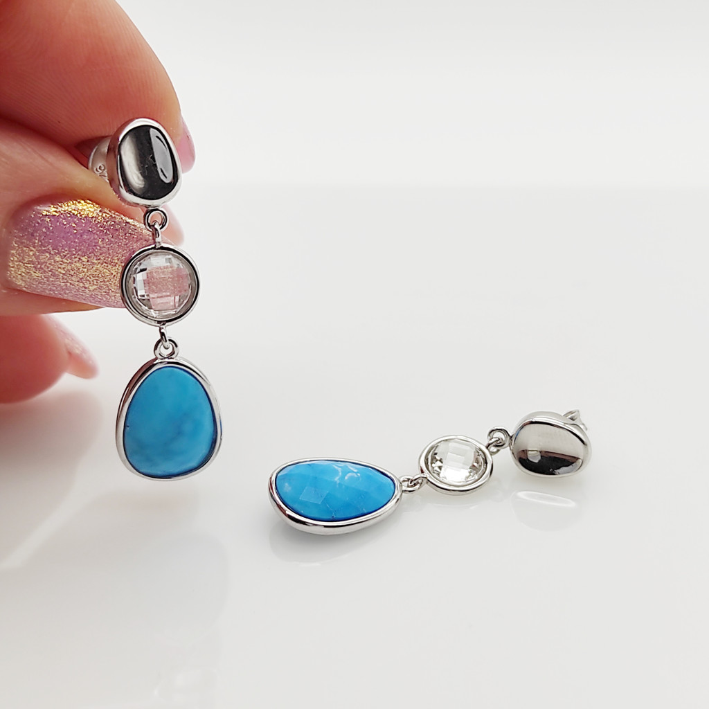 A türkiz a szabadság, a védelem és az önkifejezés köve. Élénk kékeszöld árnyalata a tenger és az ég színeit idézi, így minden megjelenésbe frissességet és természetes energiát visz. Ősidők óta a szerencse és védelmezés szimbólumaként tartják számon – úgy vélik, elnyeli a negatív energiákat, miközben erősíti az önbizalmat és a kommunikációt. A türkiz a Nyilas, Vízöntő és Halak csillagjegyek szerencseköve, de azokhoz is tökéletesen illik, akik a szabadság, a kreativitás és a pozitív energia jegyében élik mindennapjaikat. A 925 finomságú ezüst hűvös fénye gyönyörűen kiemeli a türkiz egyedi mintázatát és színmélységét.