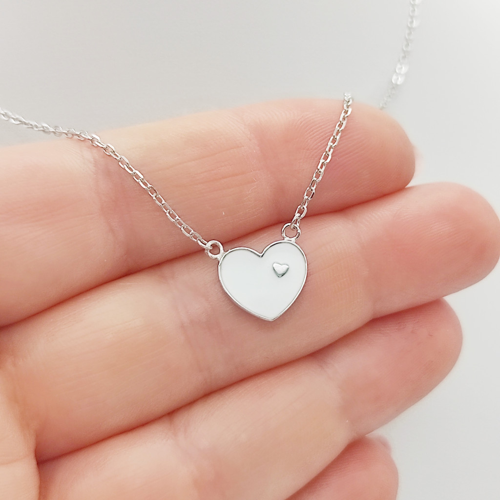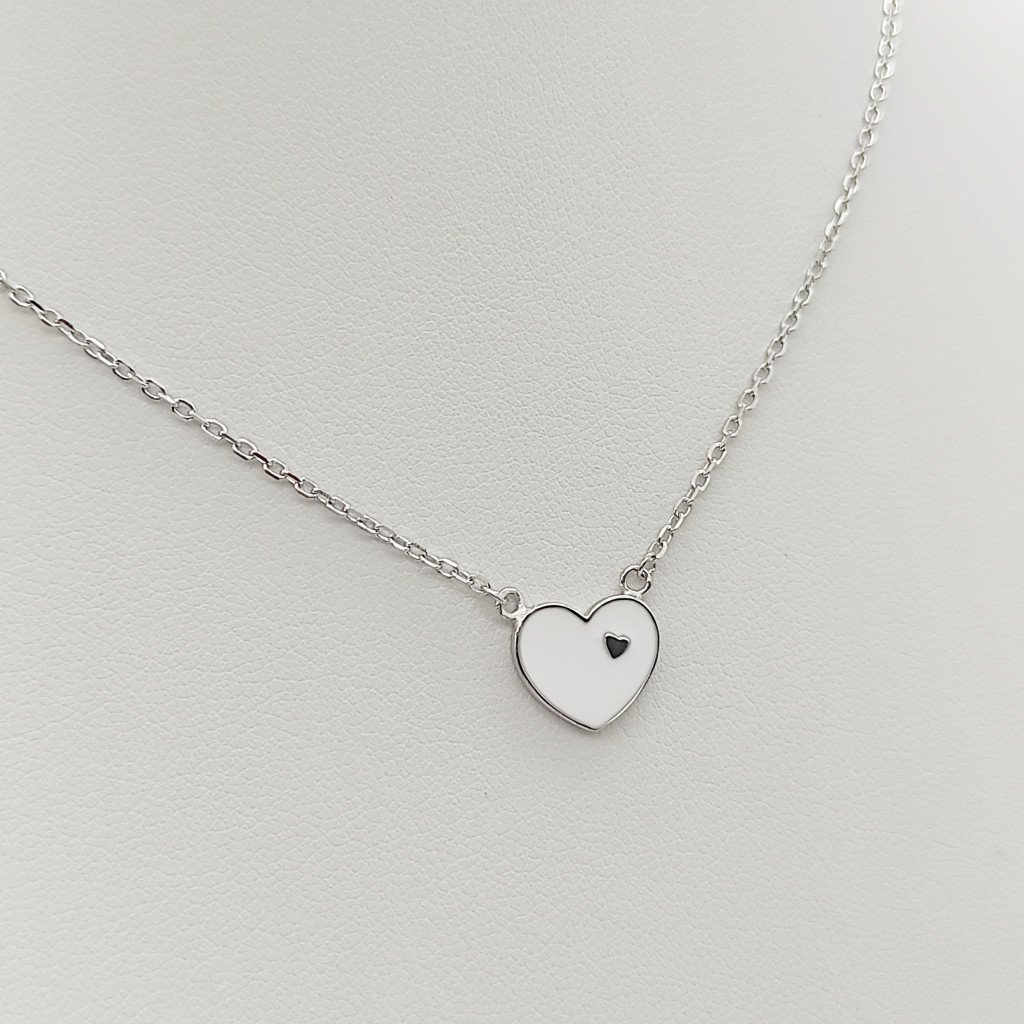 Ezüst gyermek nyaklánc fehér szív medállal