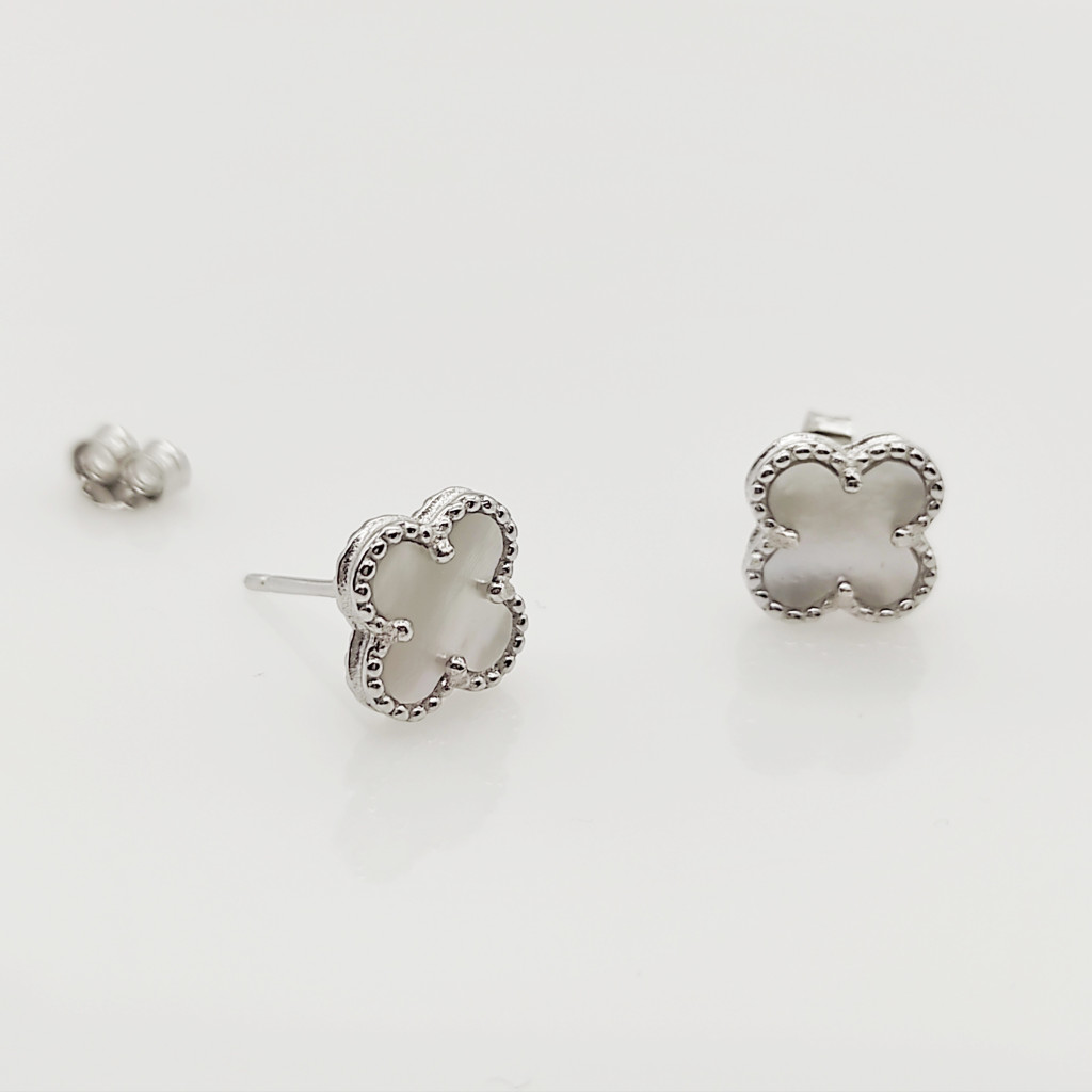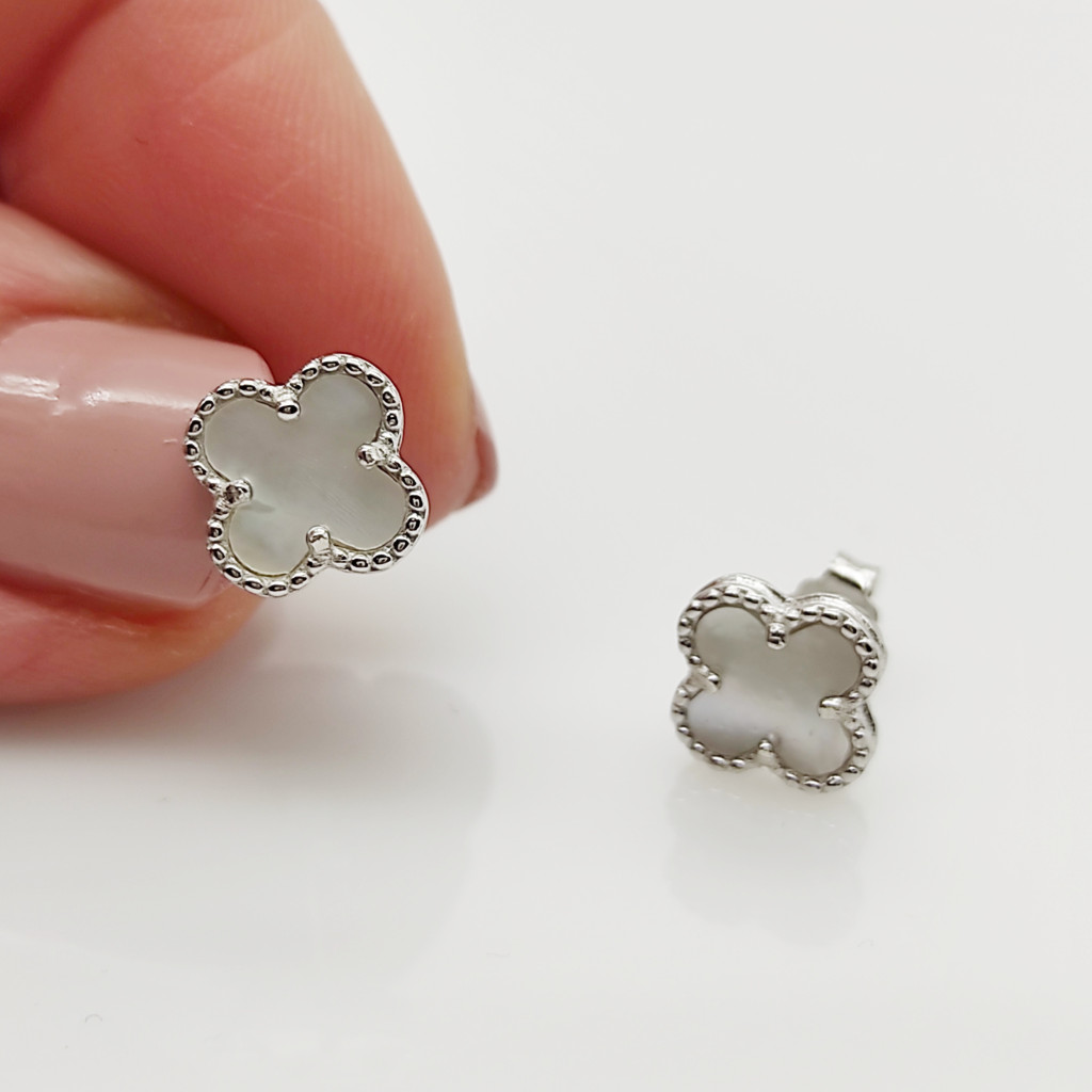 Ezüst gyöngyház lóhere fülbevaló