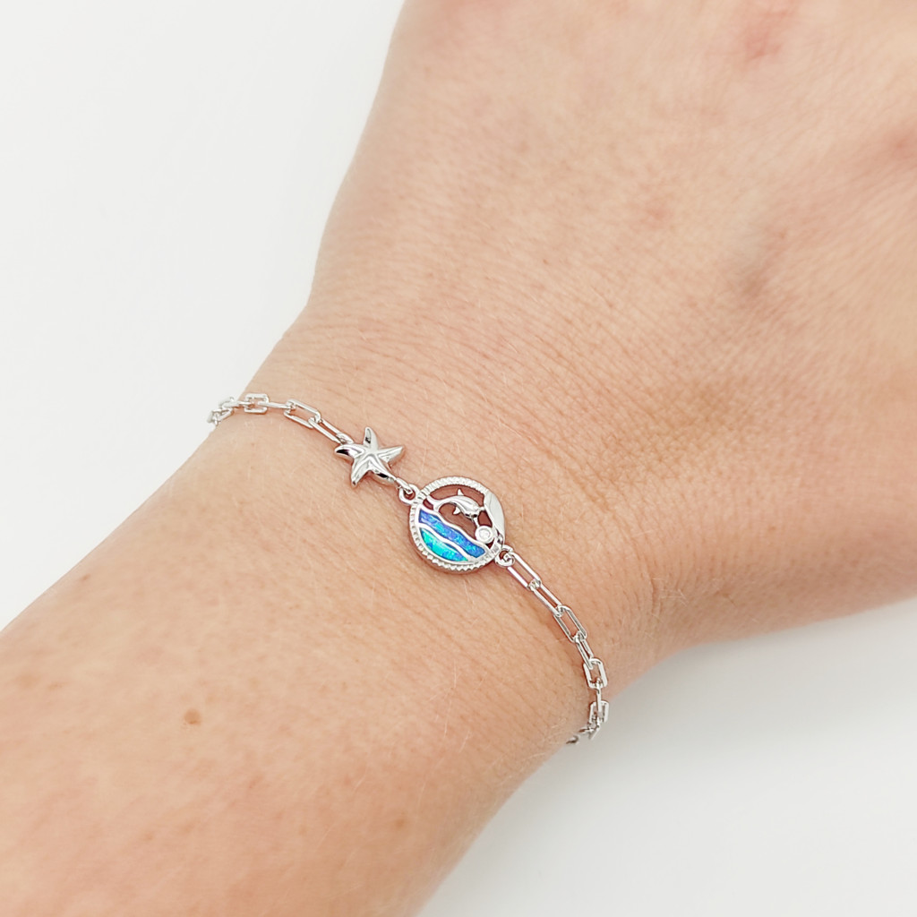Ezüst karlánc tengeri csillaggal és delfinnel