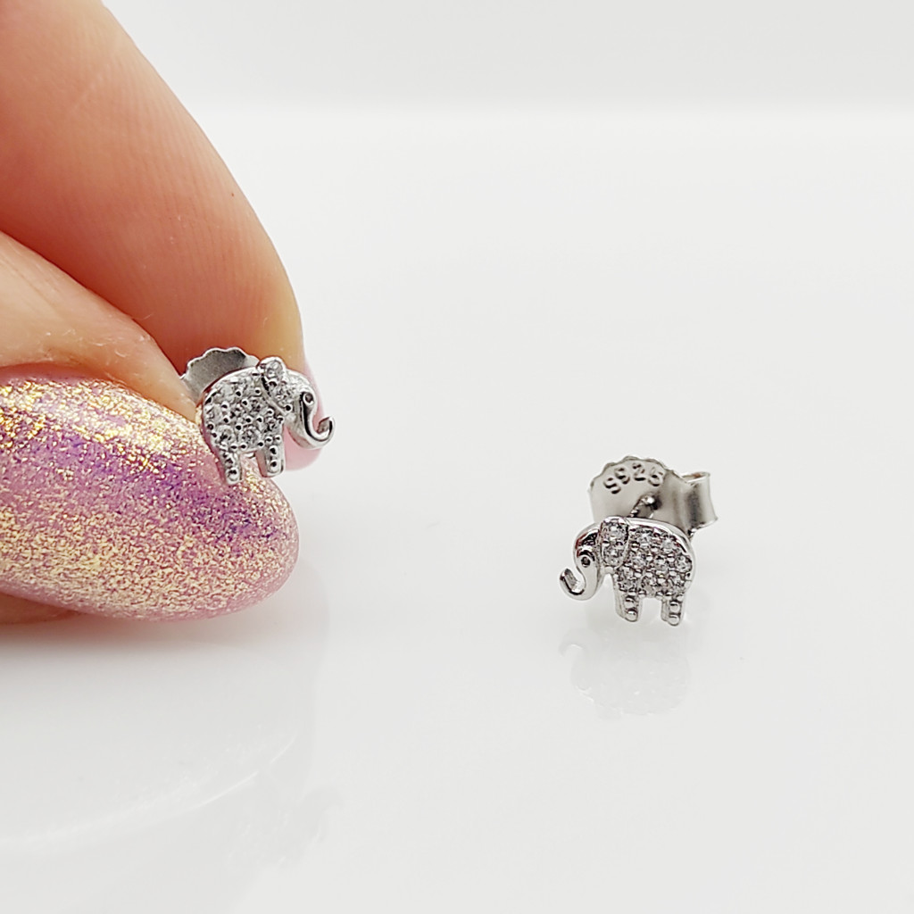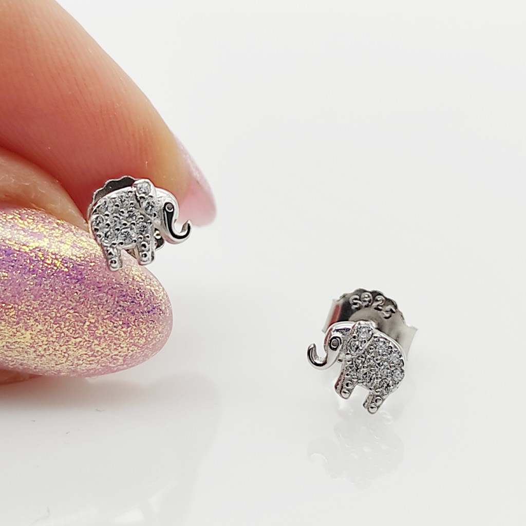 Ezüst kis köves elefánt fülbevaló