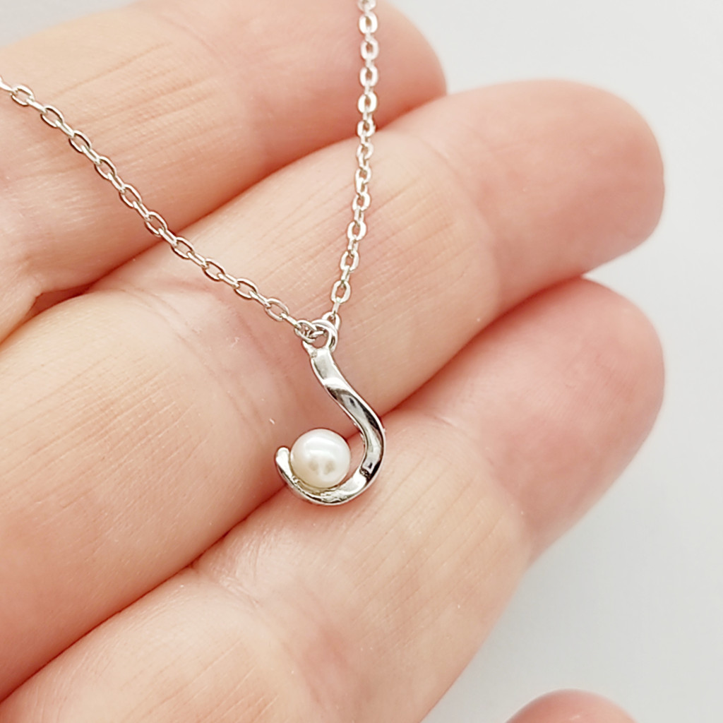 Ezüst modern nyaklánc kis gyöngy medállal