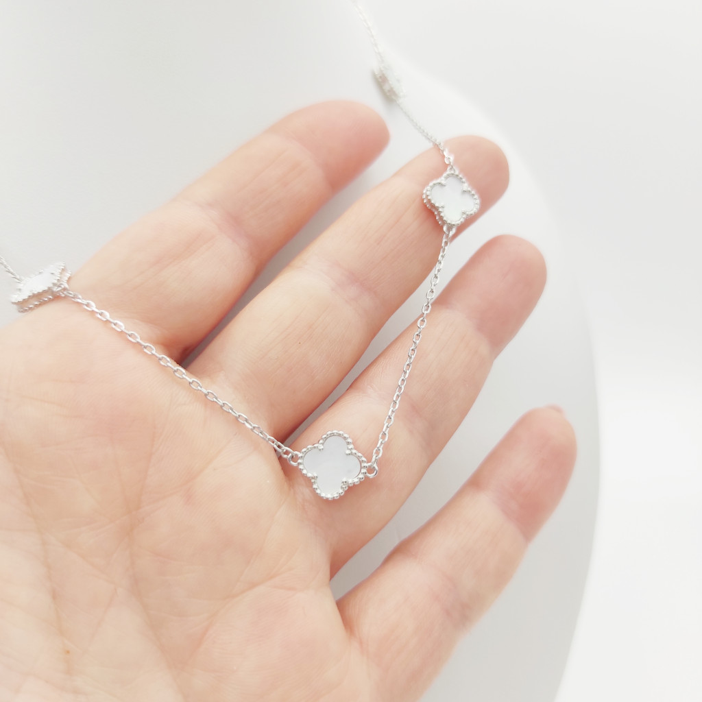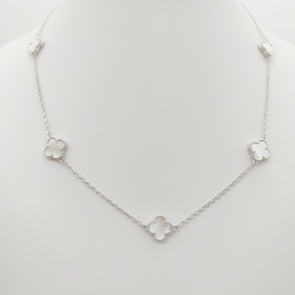 Ezüst nyaklánc 5 gyöngyház lóhere medállal