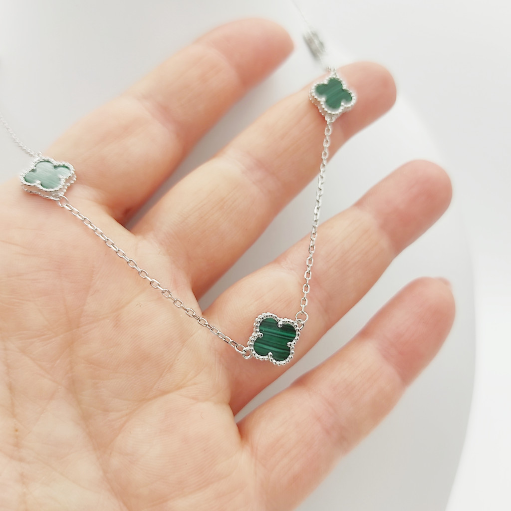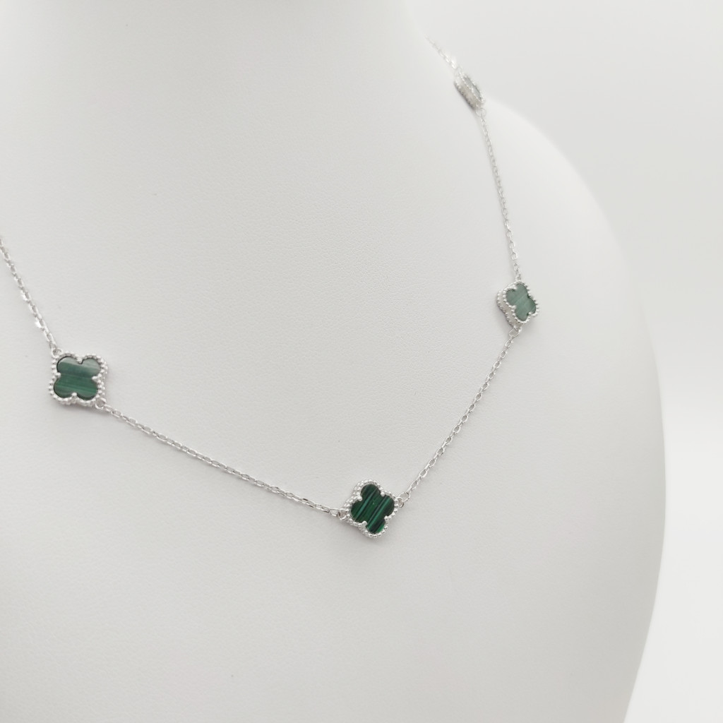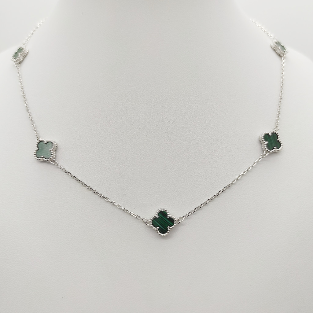 Ezüst nyaklánc 5 zöld lóhere medállal