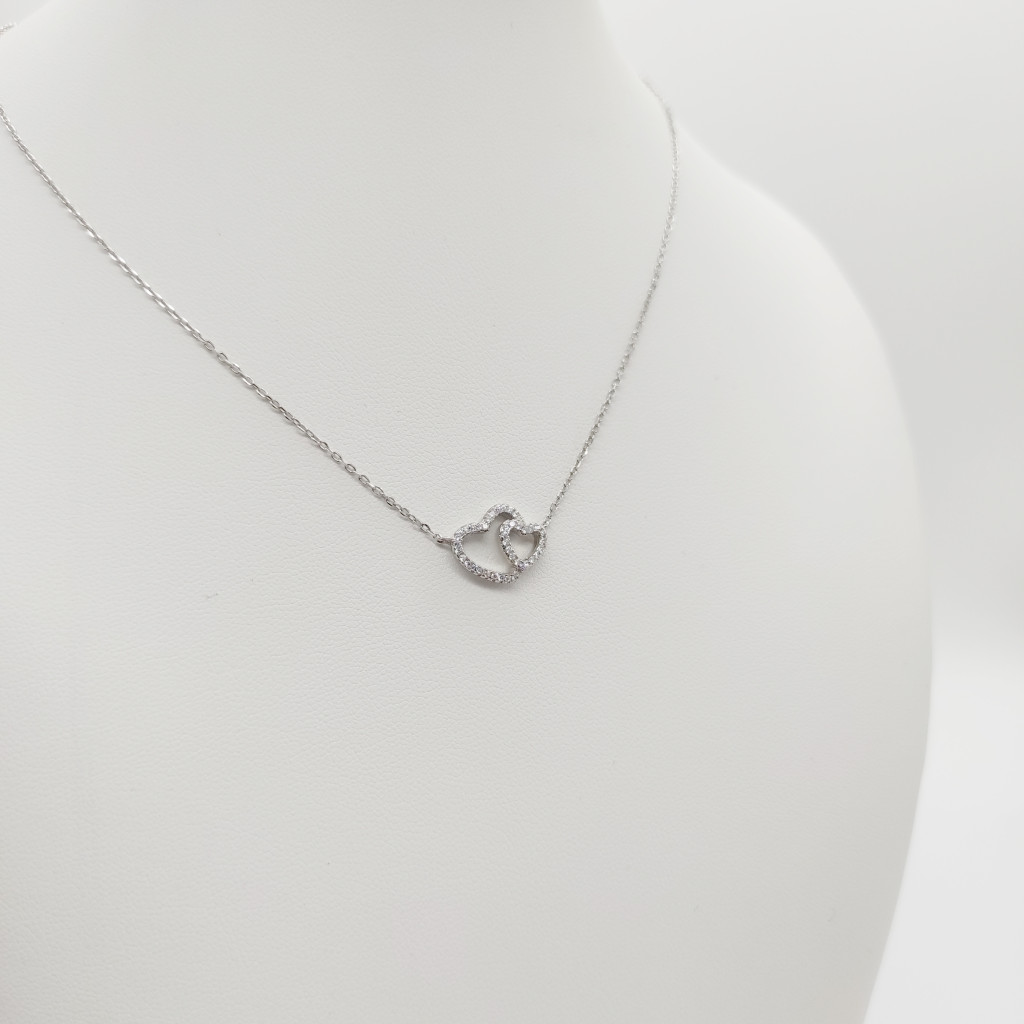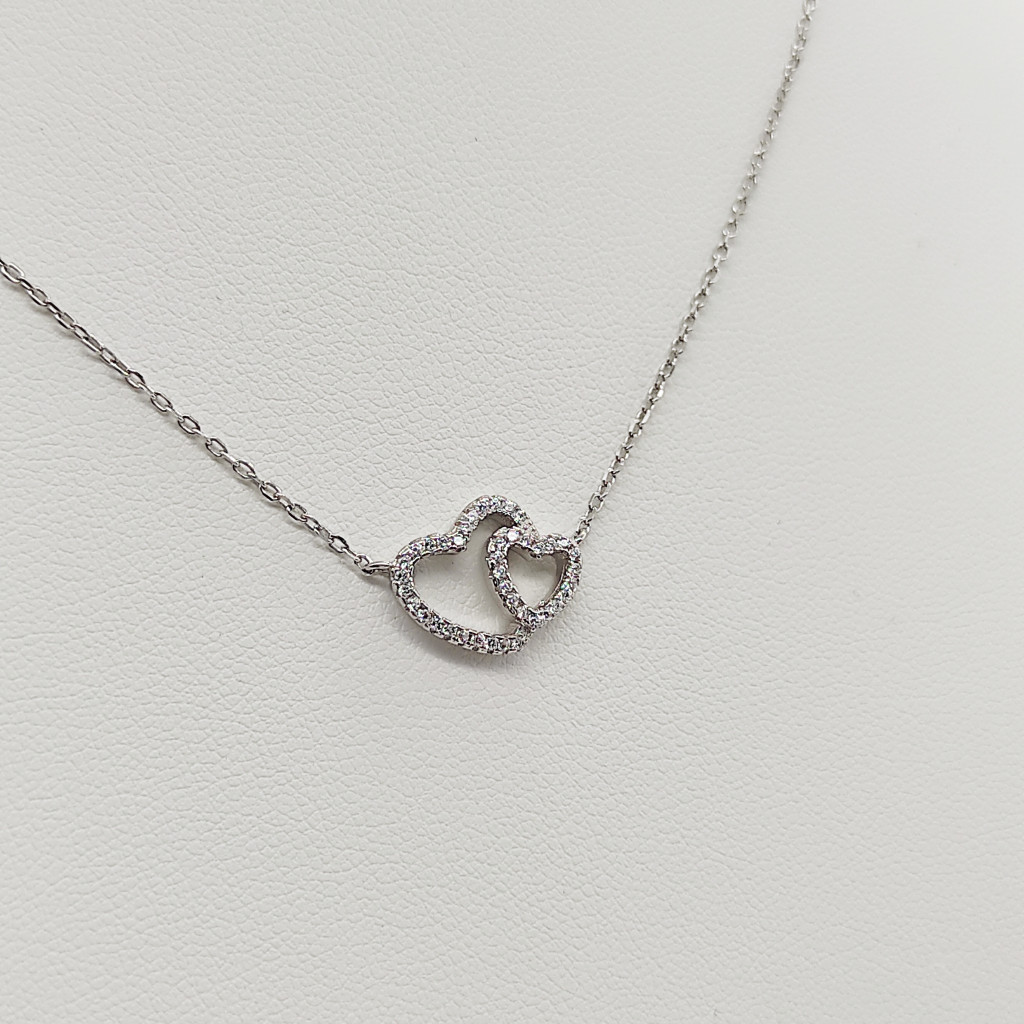 Ezüst nyaklánc dupla szív medállal