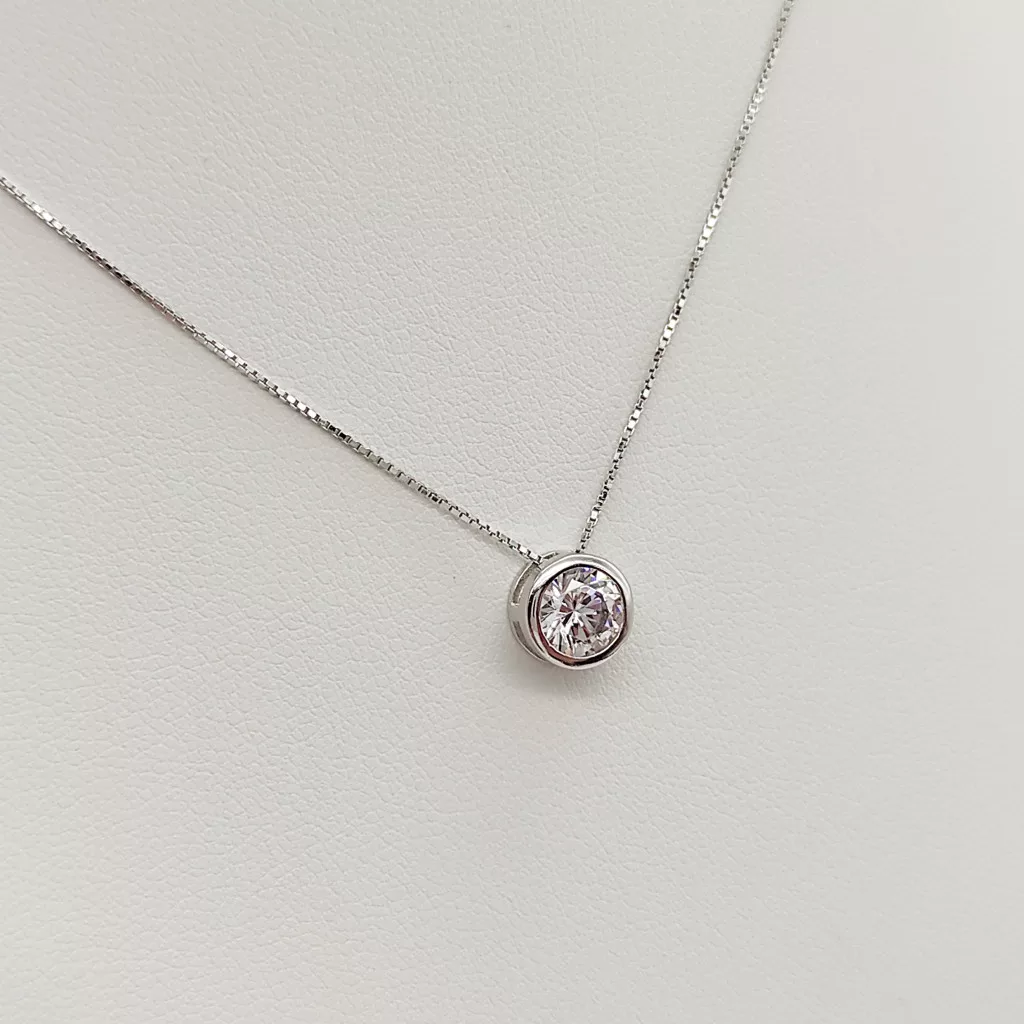 Ezüst nyaklánc egy köves medállal button foglalatban