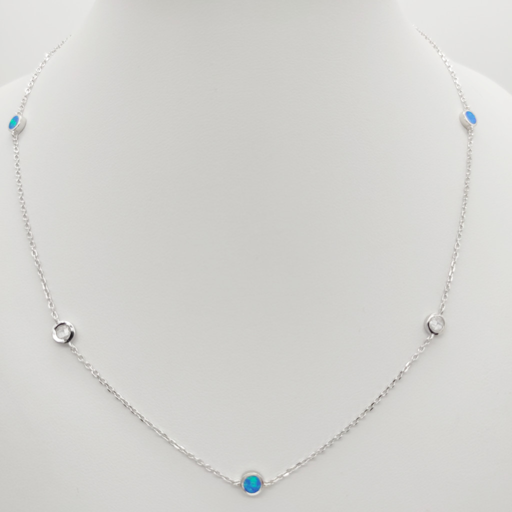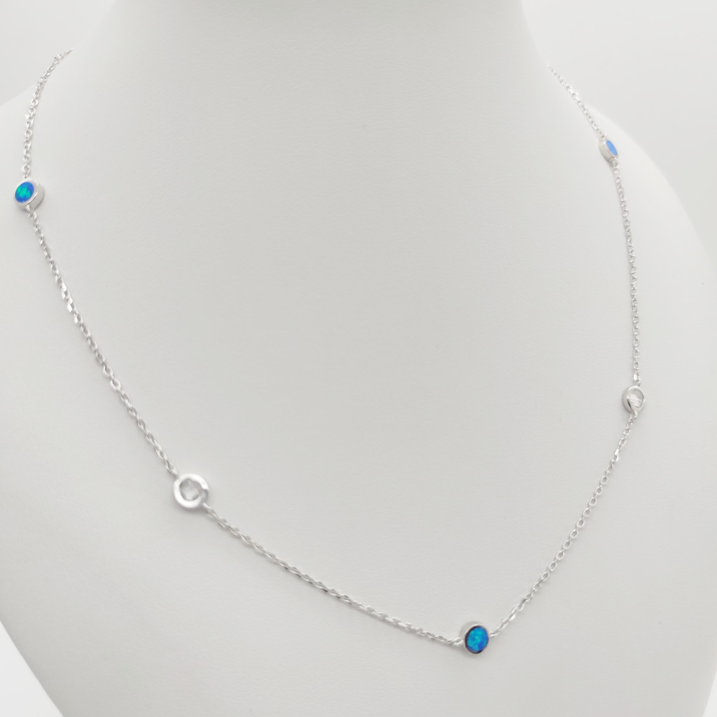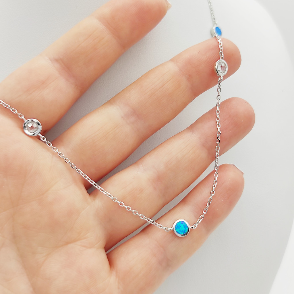 Ezüst nyaklánc kék opállal és cirkóniákkal