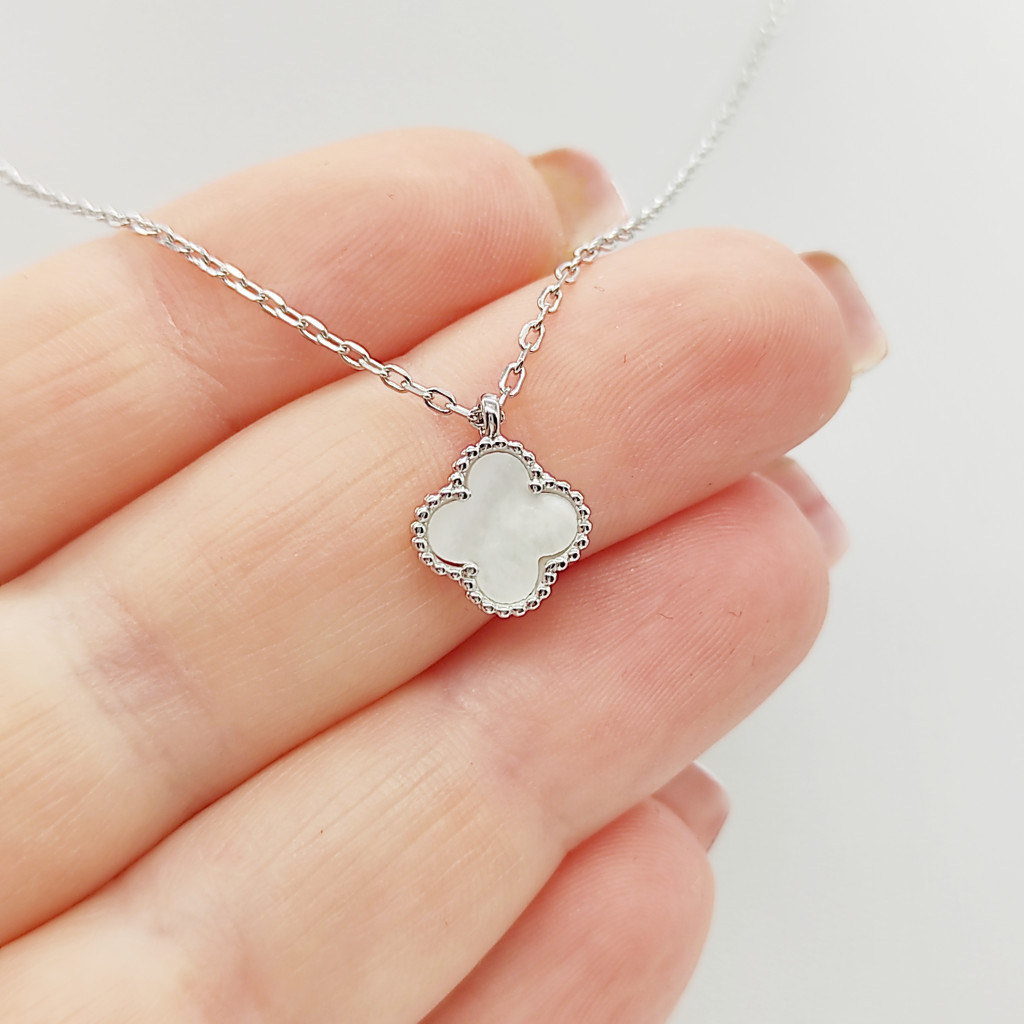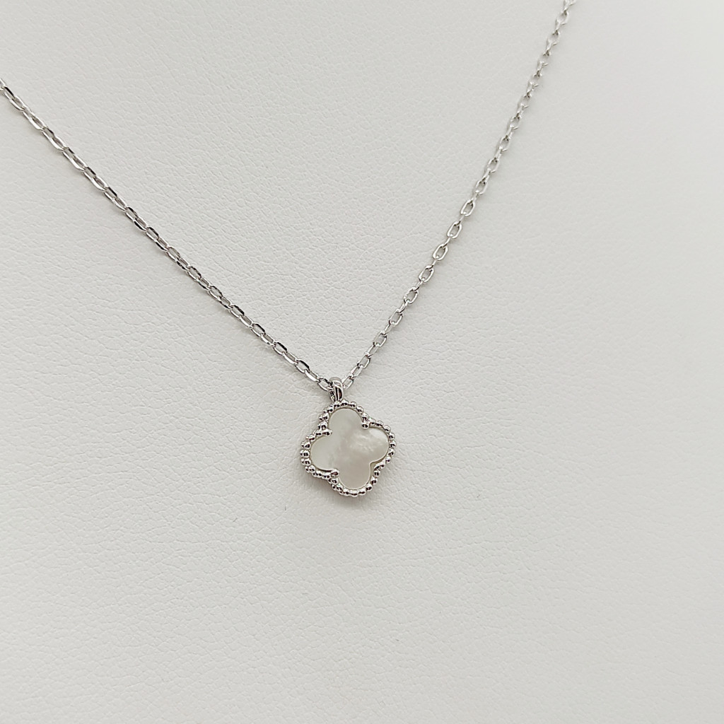Ezüst nyaklánc kis gyöngyház lóhere medállal