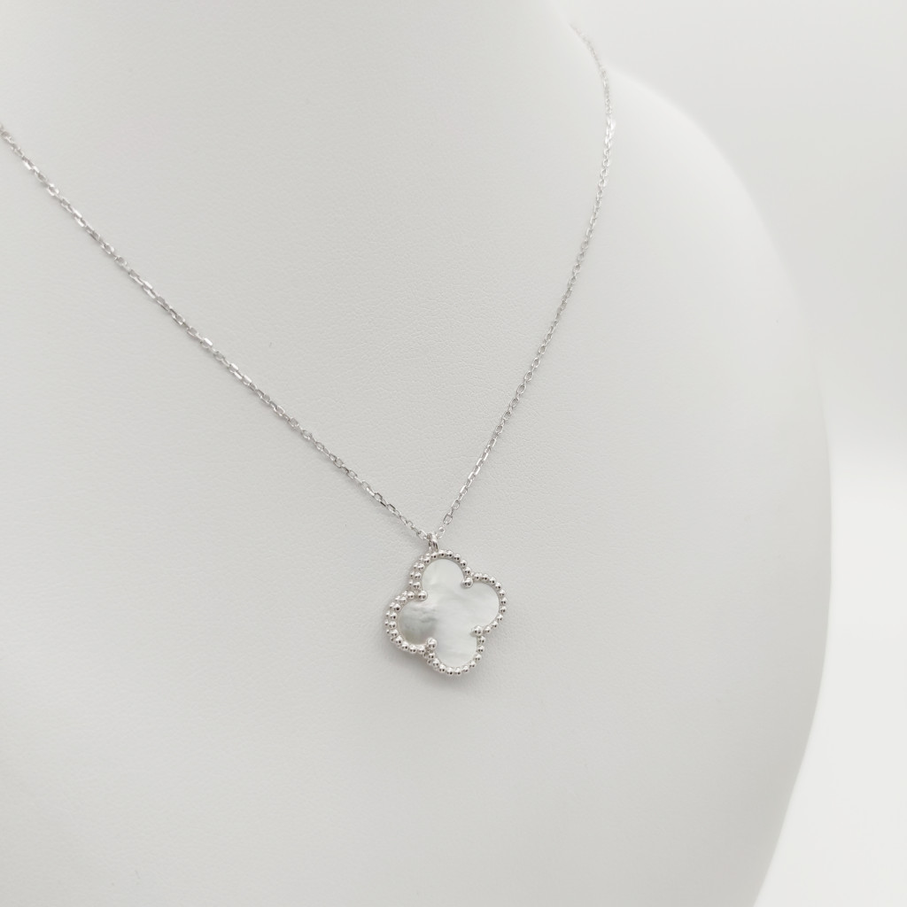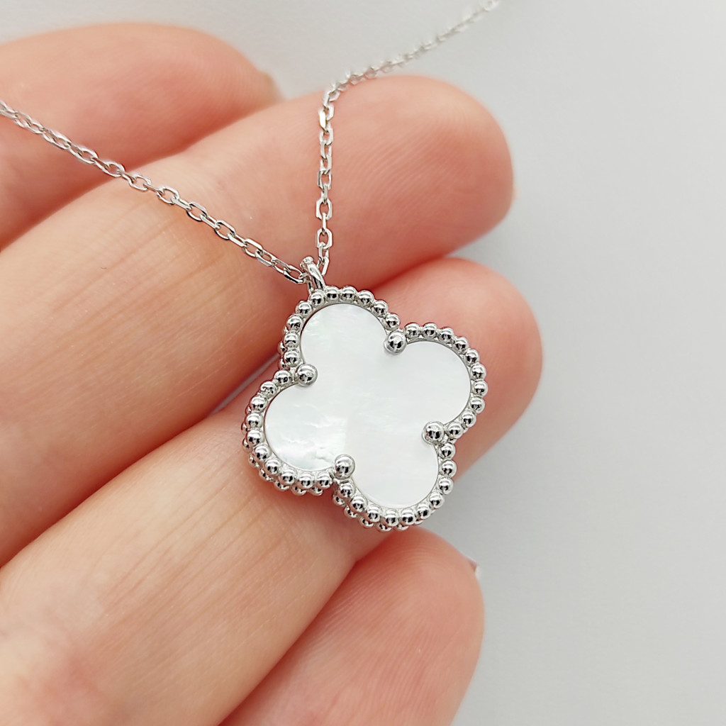 Ezüst nyaklánc nagy gyöngyház lóhere medállal