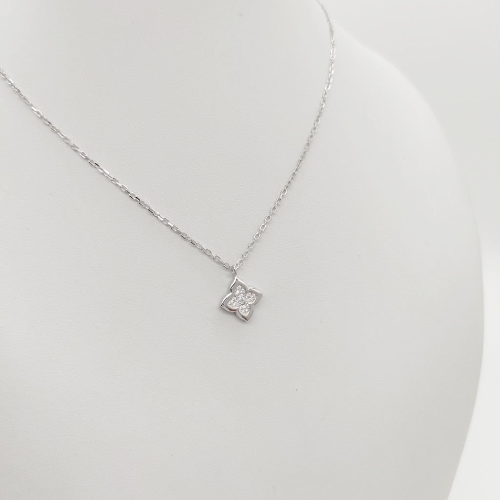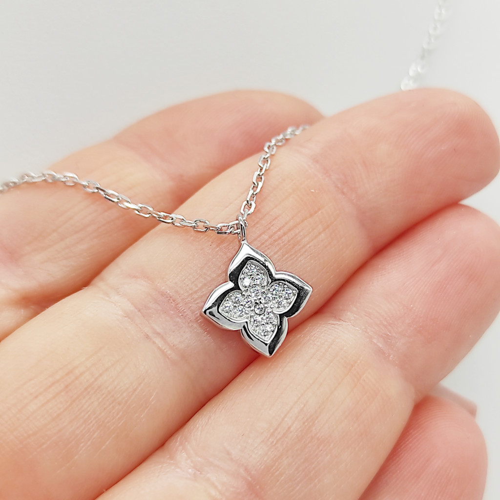 Ezüst nyaklánc szikrázó virág medállal