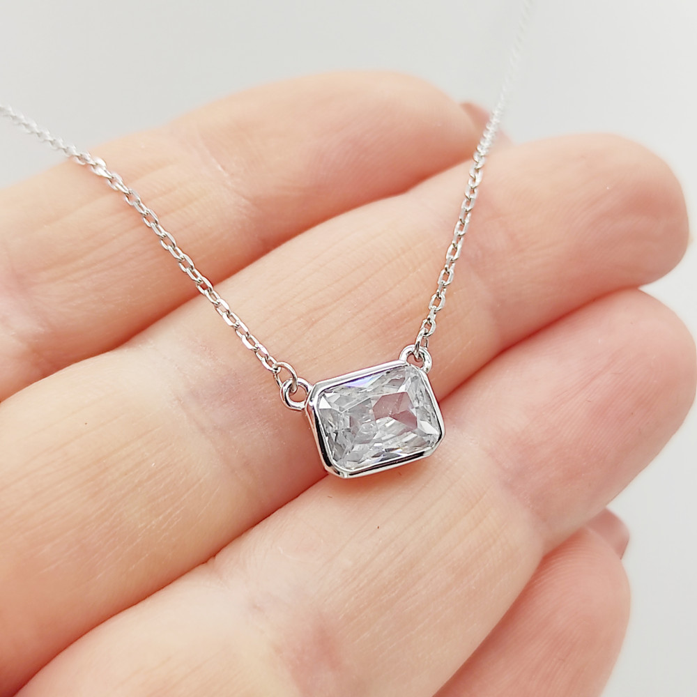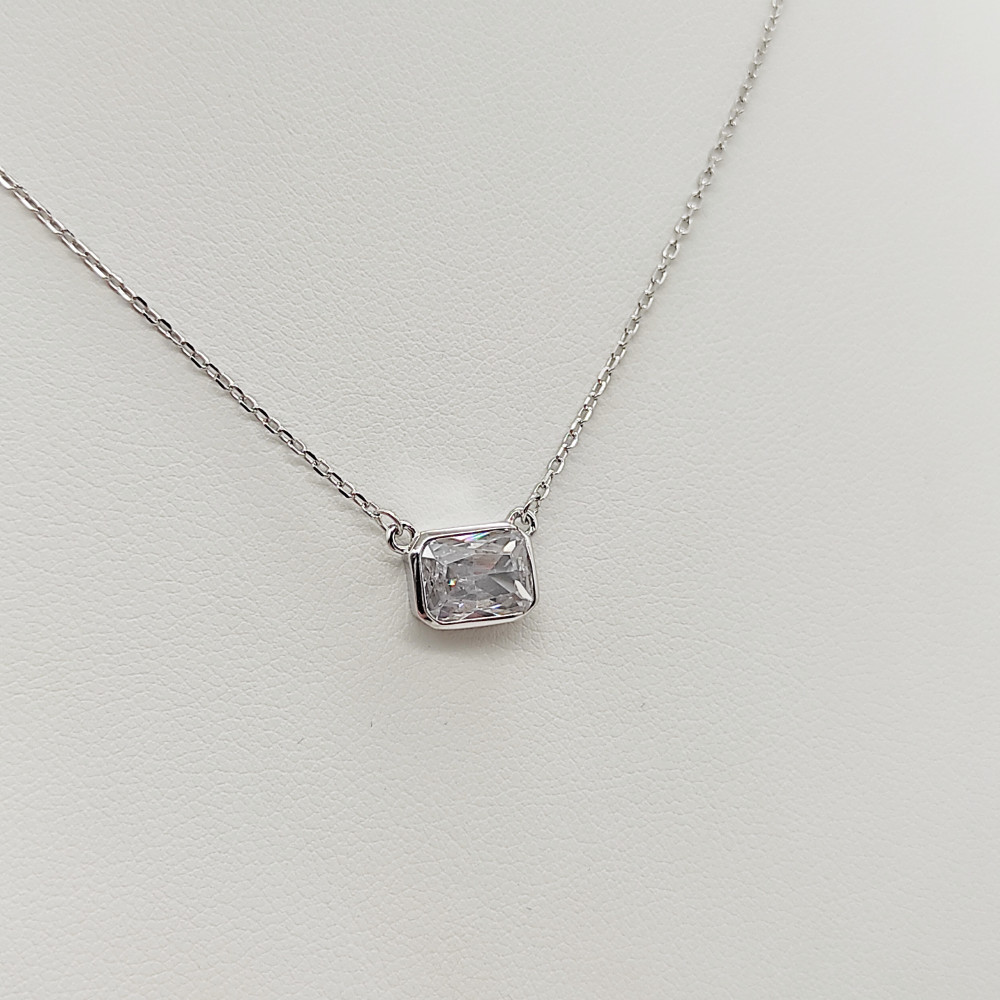 Ezüst nyaklánc szögletes köves medállal