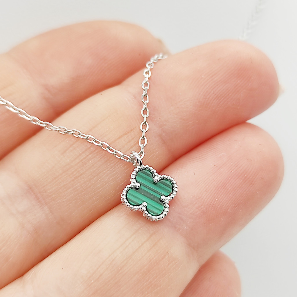 Ezüst nyaklánc zöld lóhere medállal