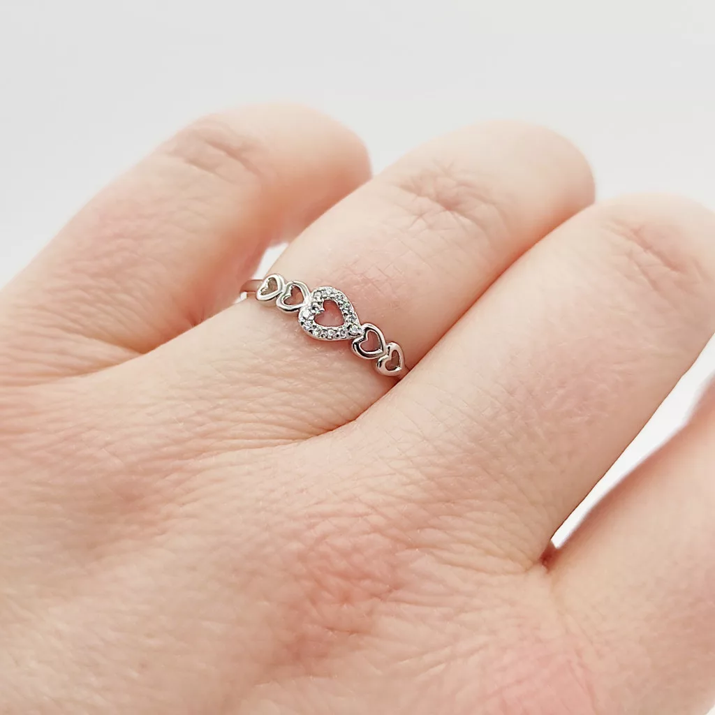 Ezüst szívecskés gyűrű cirkóniával