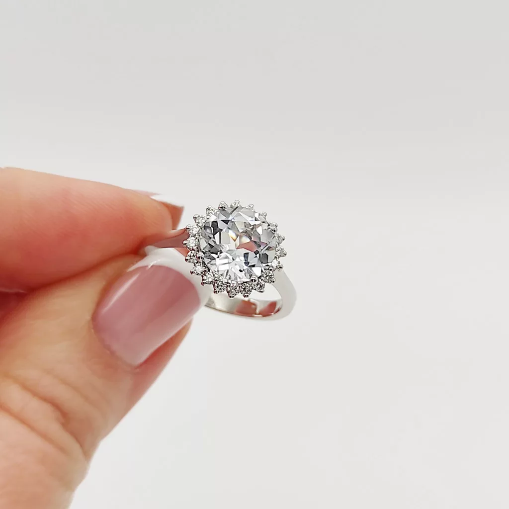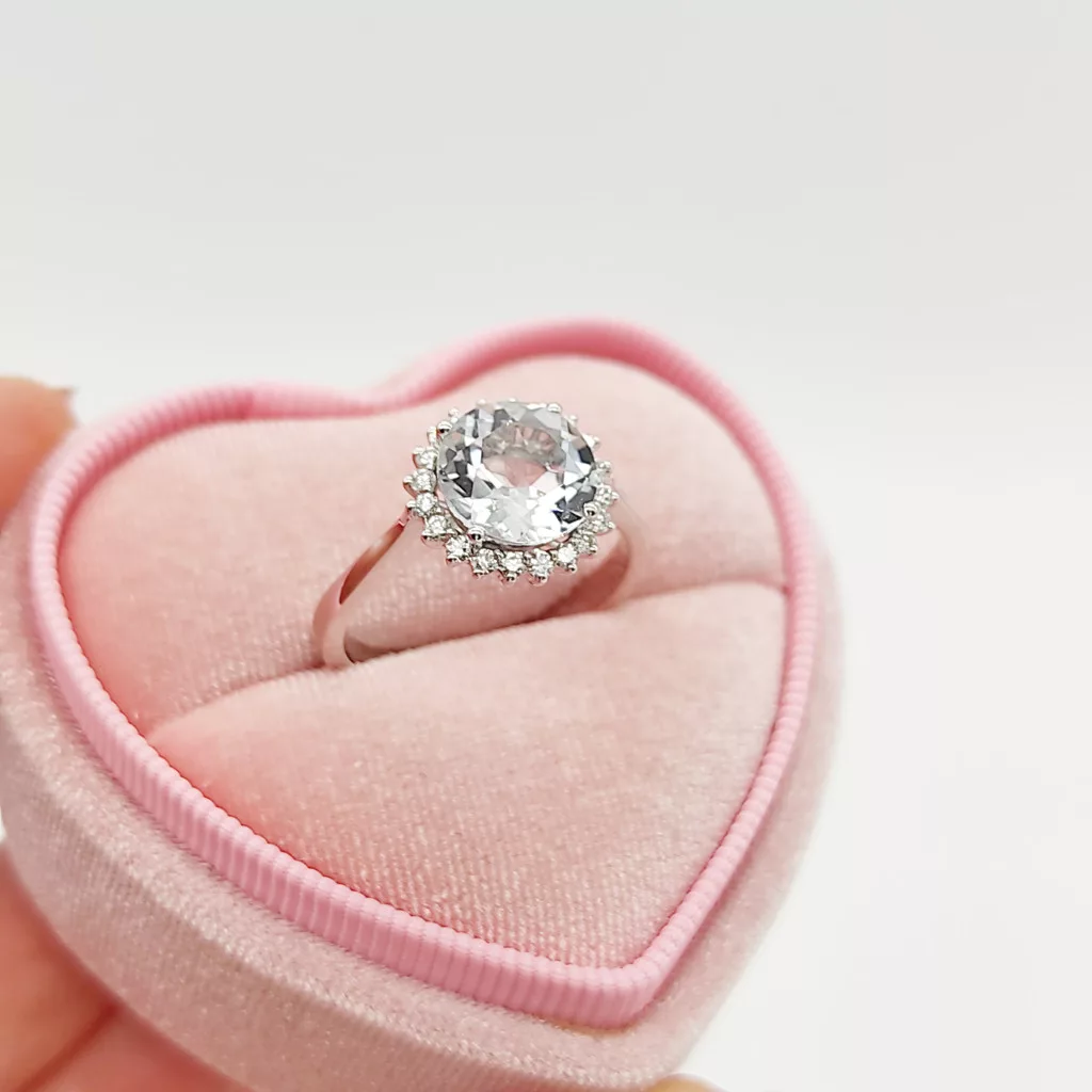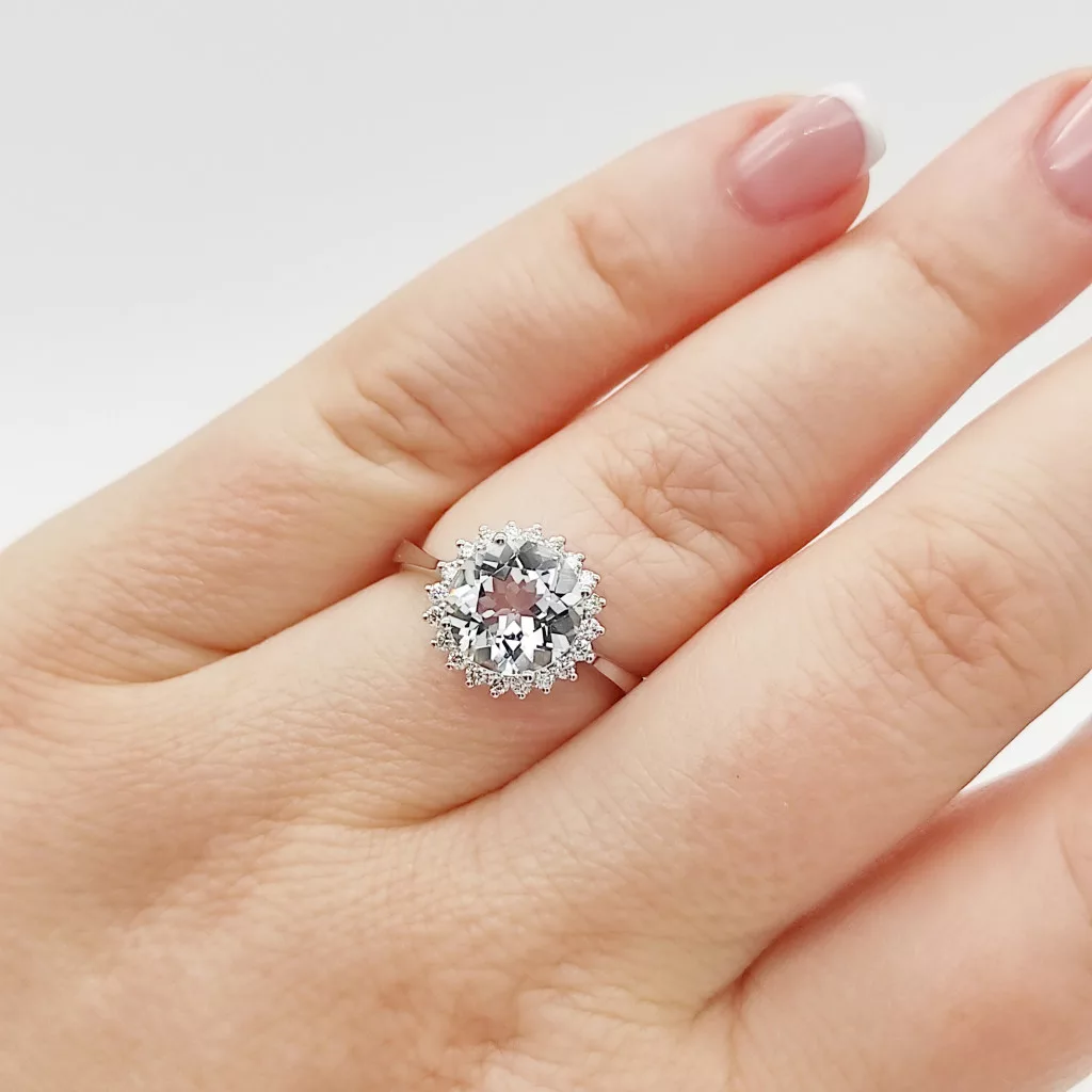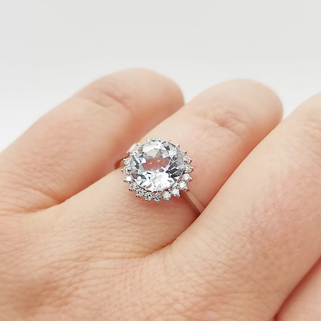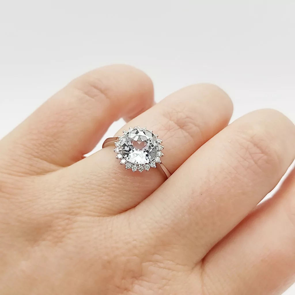 Fehér arany gyűrű gyémánttal és aquamarine-nal