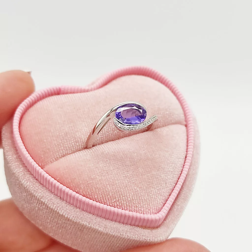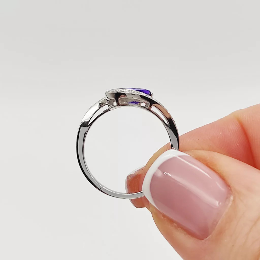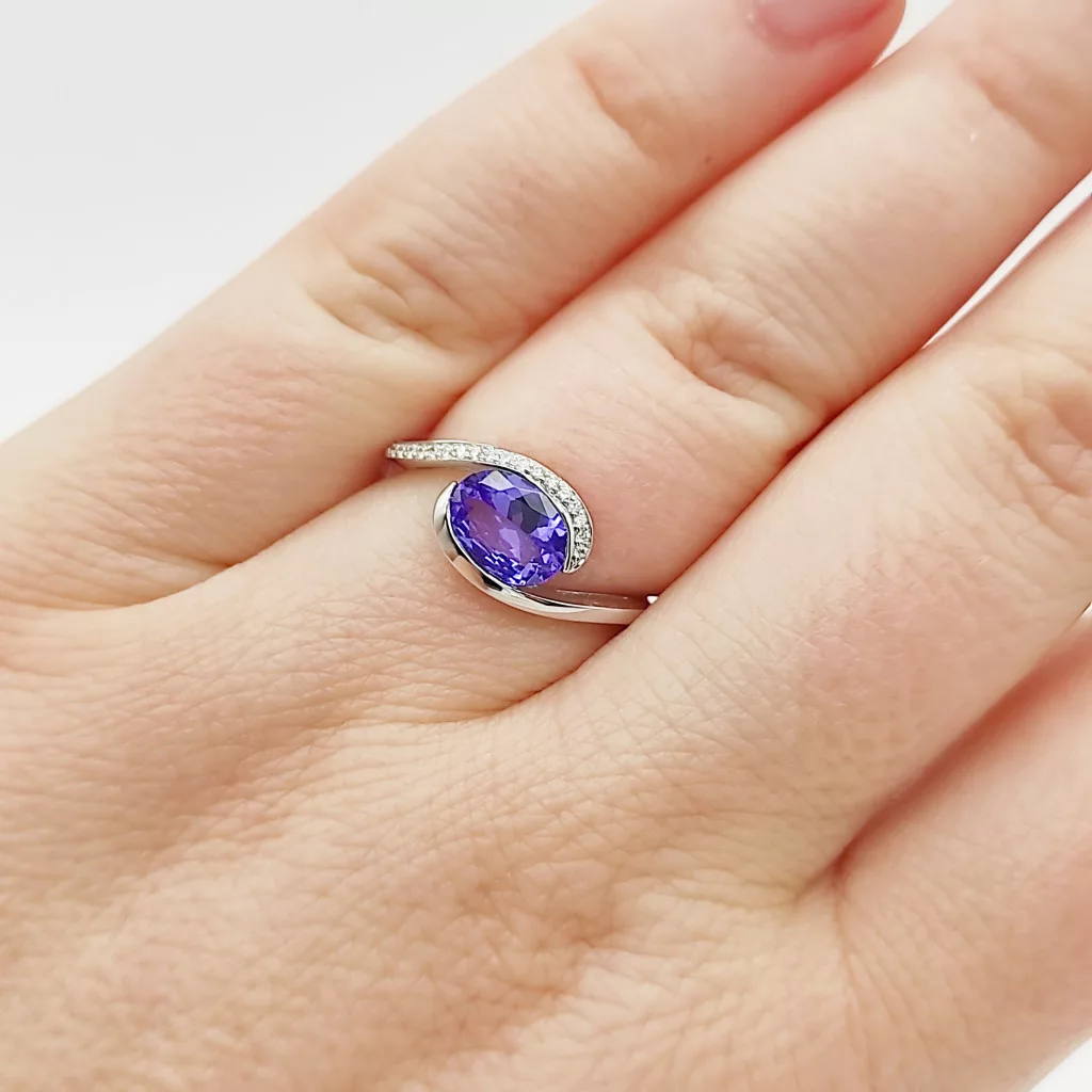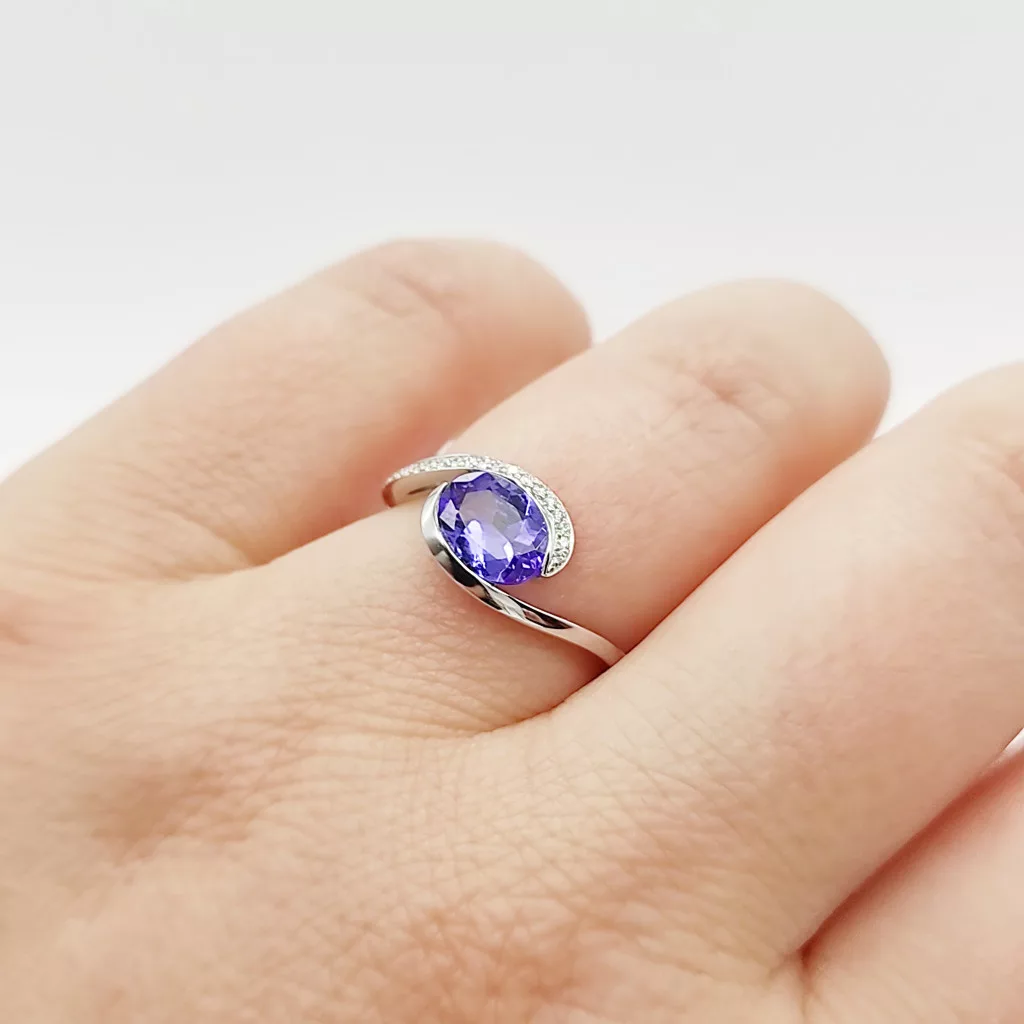 Fehér arany gyűrű gyémánttal és tanzanittal