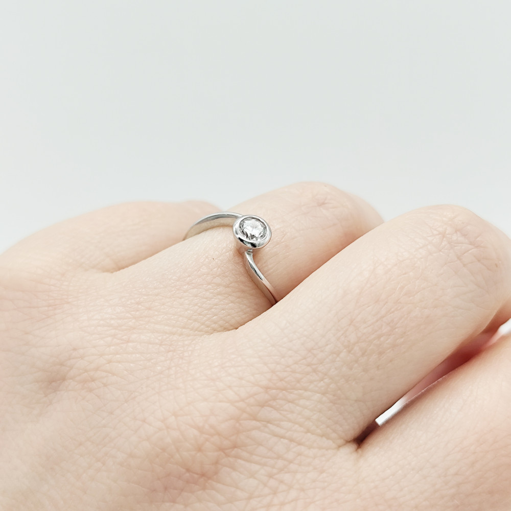 Fehér arany hullámos gyűrű egy kővel