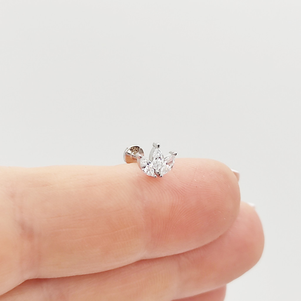 Fehér arany lótuszvirág piercing