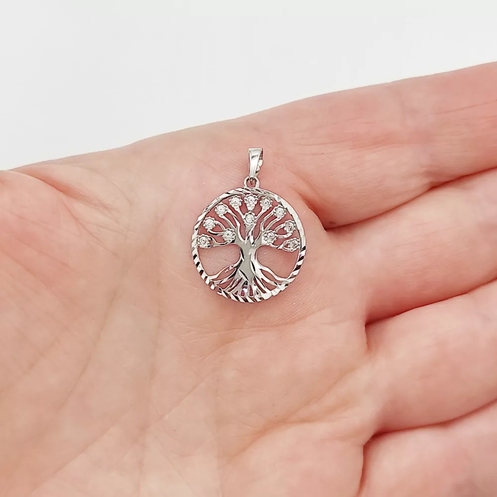 Fehér arany metszett életfa medál