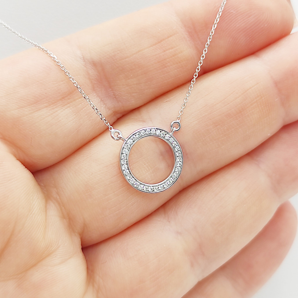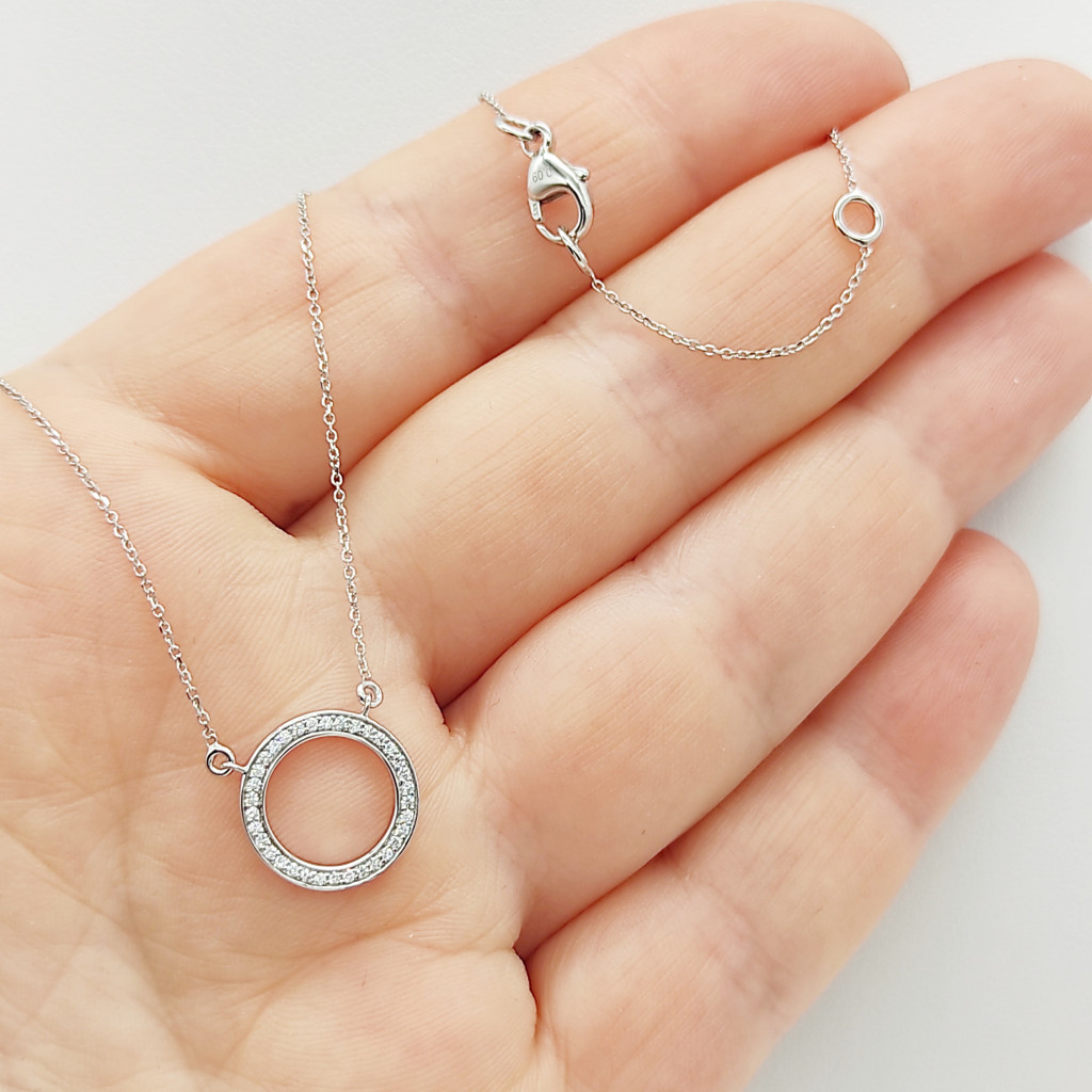 Fehér arany nyaklánc körbeköves gyémánt karika medállal