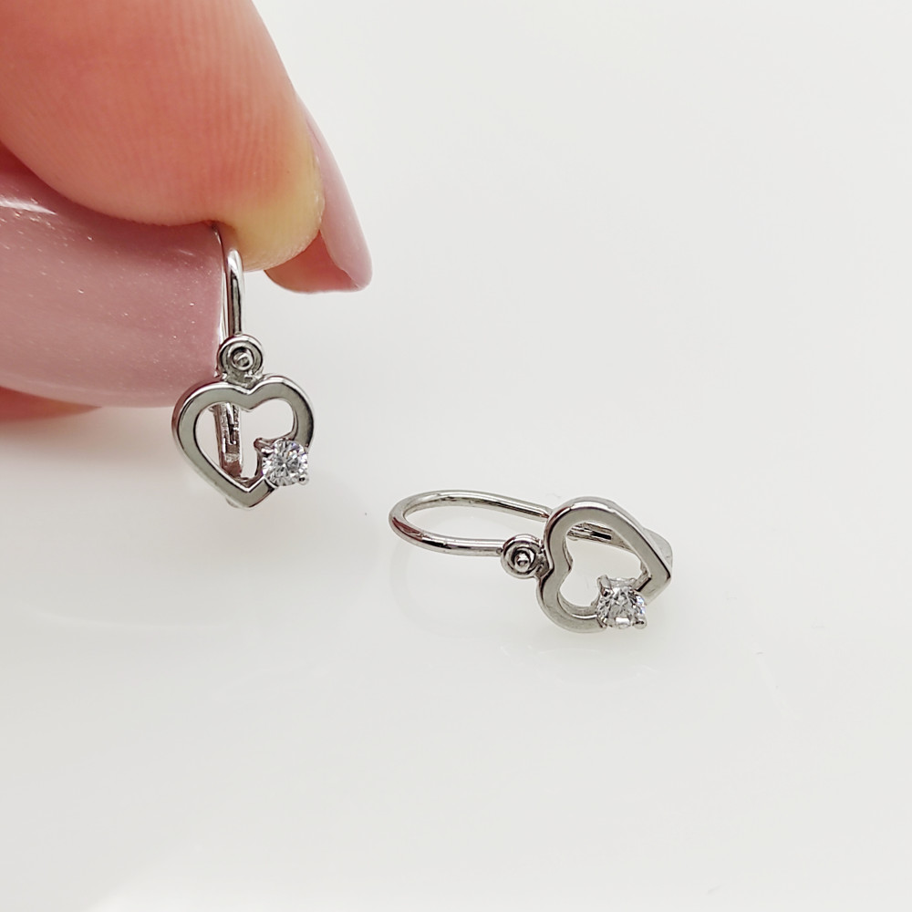 Fehér arany szívecske fülbevaló fehér kővel