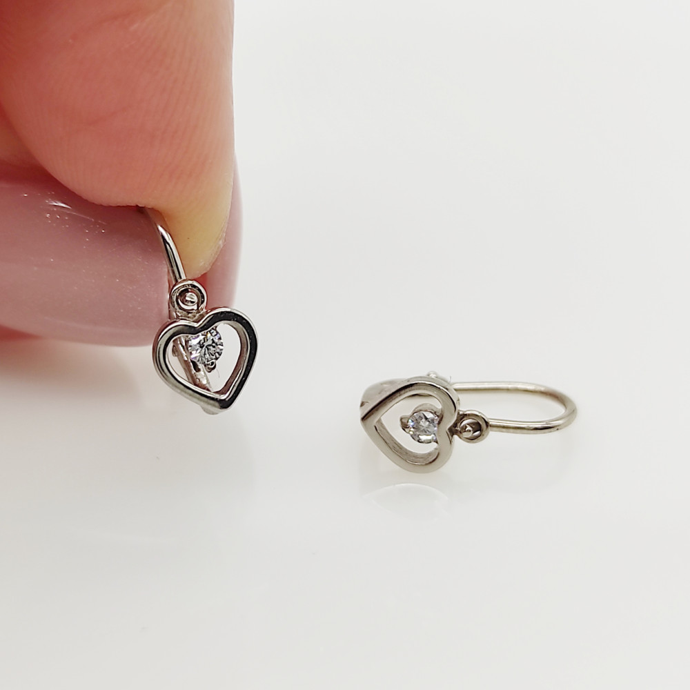 Fehér arany szívecske fülbevaló közepén fehér kővel
