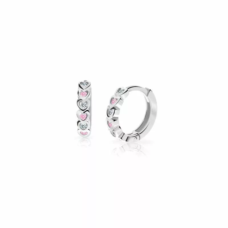 Fehér arany rózsaszín-fehér szivecskés karika fülbevaló