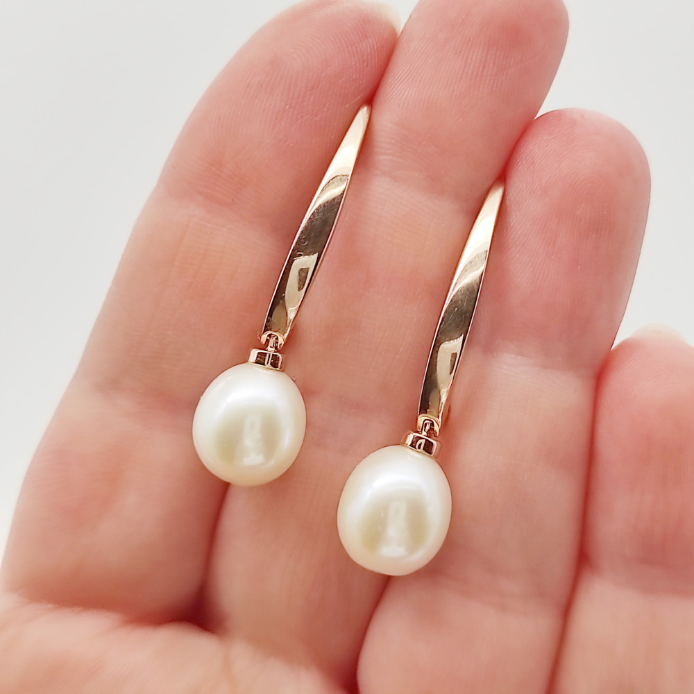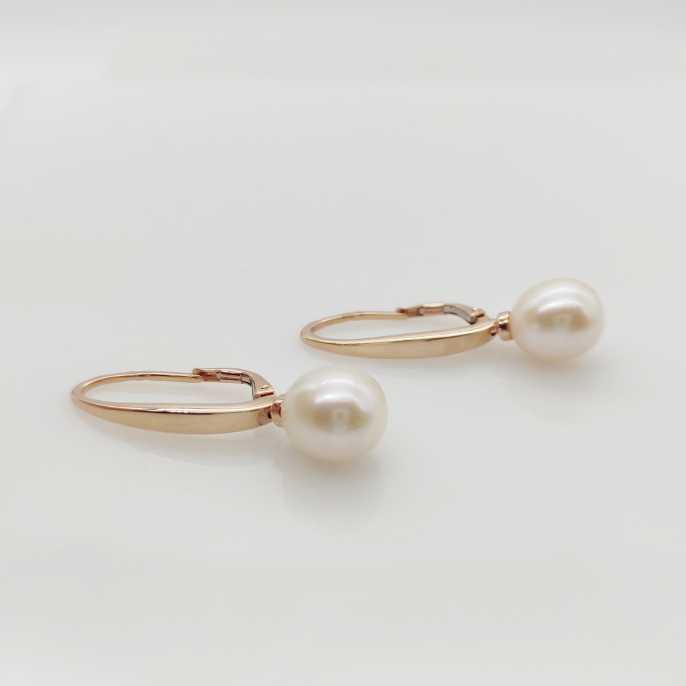 Rozé arany fülbevaló nagy tenyésztett gyönggyel