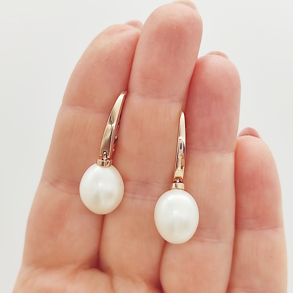 Rozé arany lógós fülbevaló nagy gyönggyel