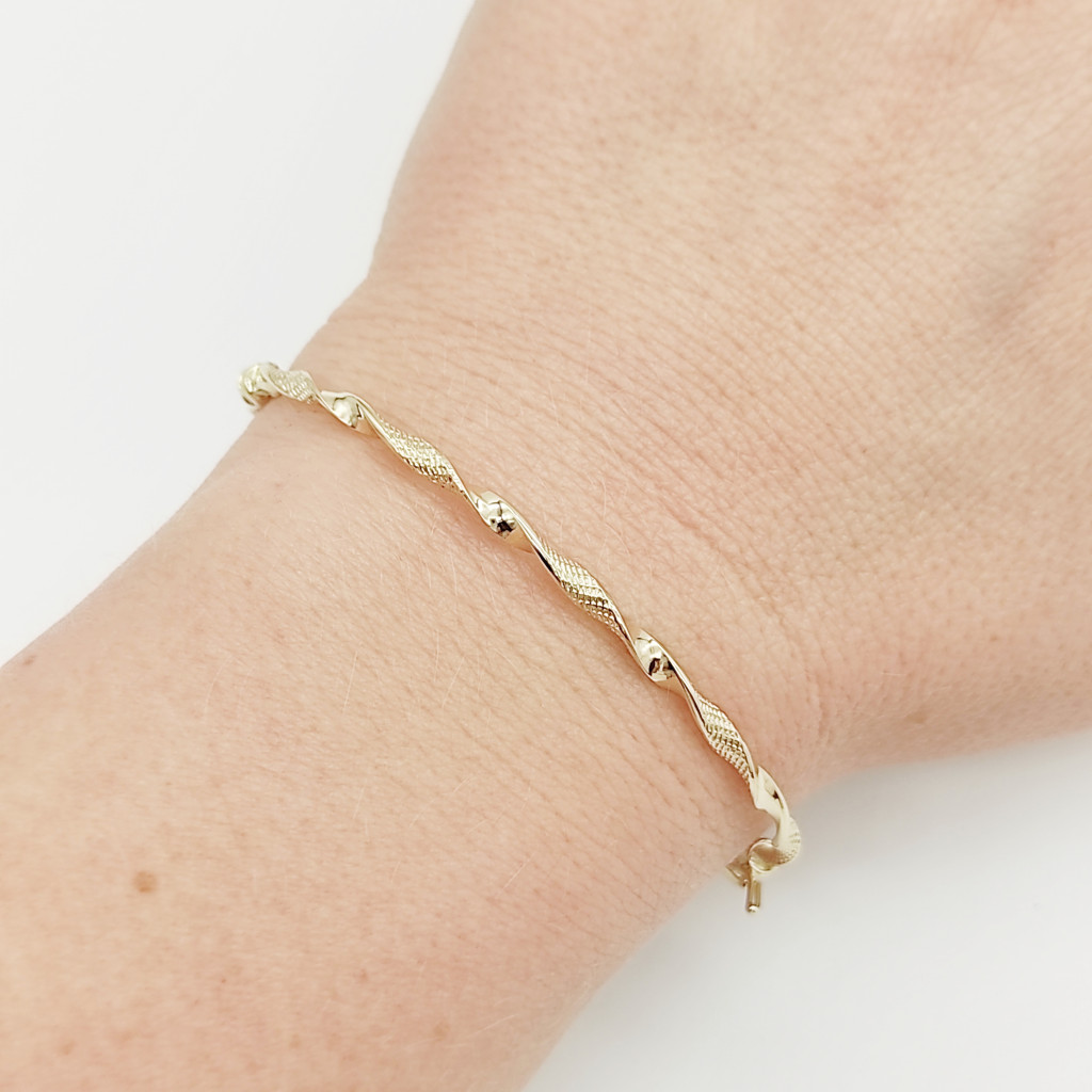 A klasszikus szemláncok mellett merev karperecek és modern formavilágú díszített karkötők is elérhetők, így könnyen választhatsz alkalomhoz, hangulathoz vagy akár ajándékozási szándékhoz igazodva. Minden darab 14 karátos aranyból készül, időtálló minőséget és eleganciát képviselve.