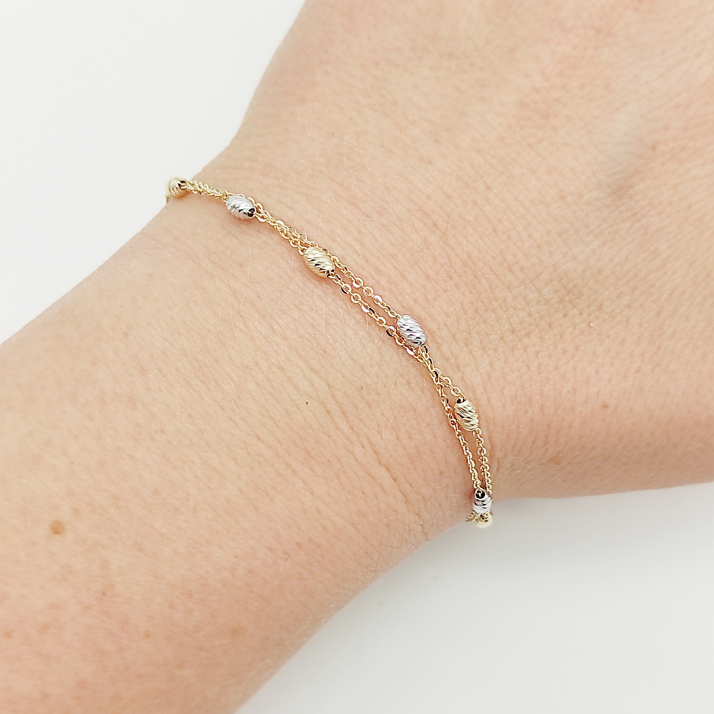Sárga arany dupla soros karlánc sárga-fehér metszett orsókkal