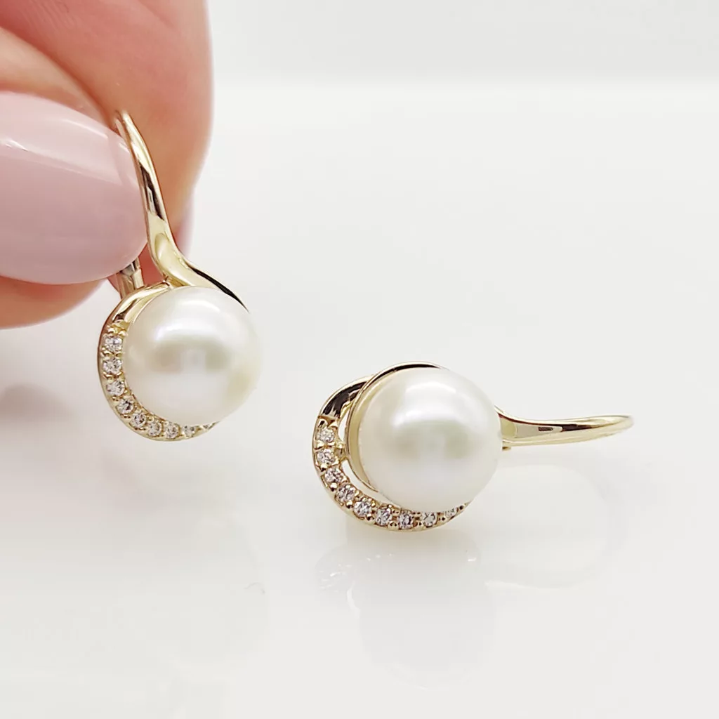 Sárga arany elegáns fülbevaló gyönggyel