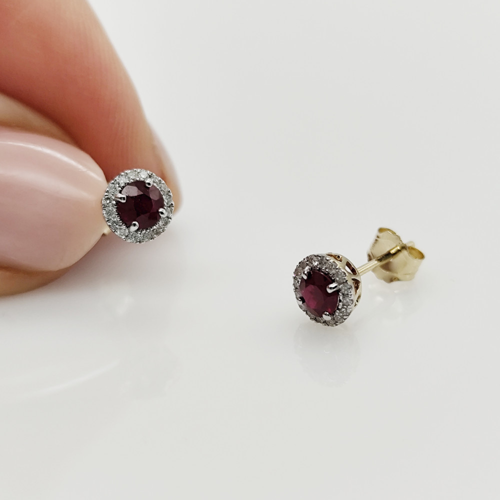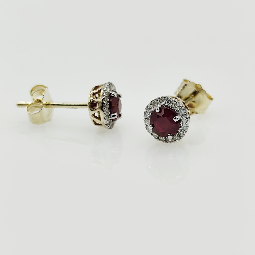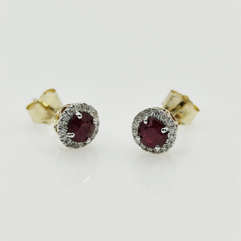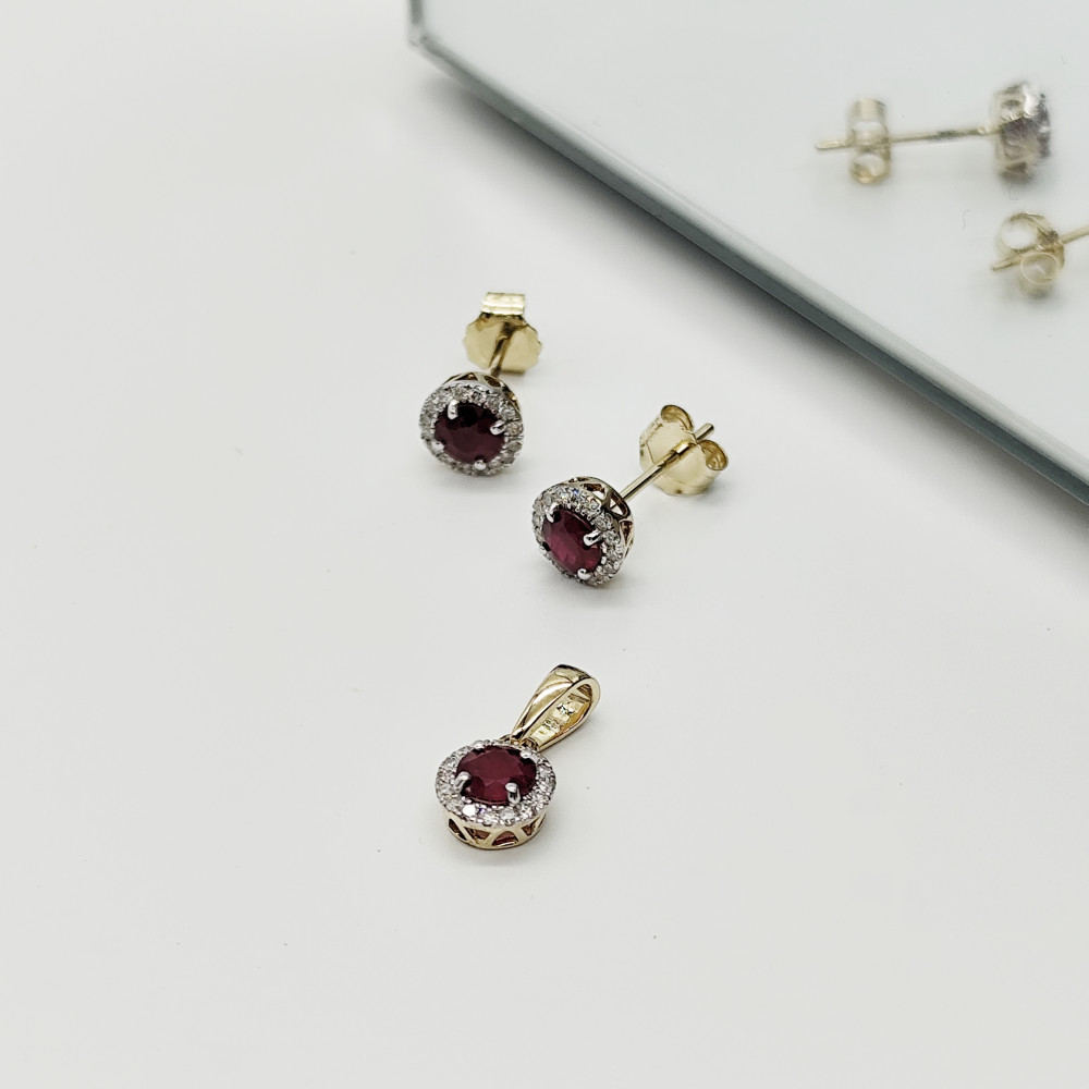 Sárga arany fülbevaló gyémánttal és rubinnal