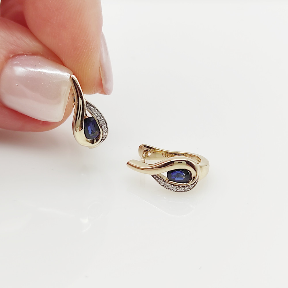 Sárga arany fülbevaló gyémánttal és zafírral