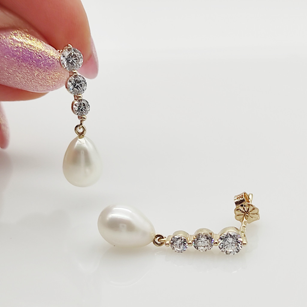 Sárga arany fülbevaló gyönggyel és cirkóniával