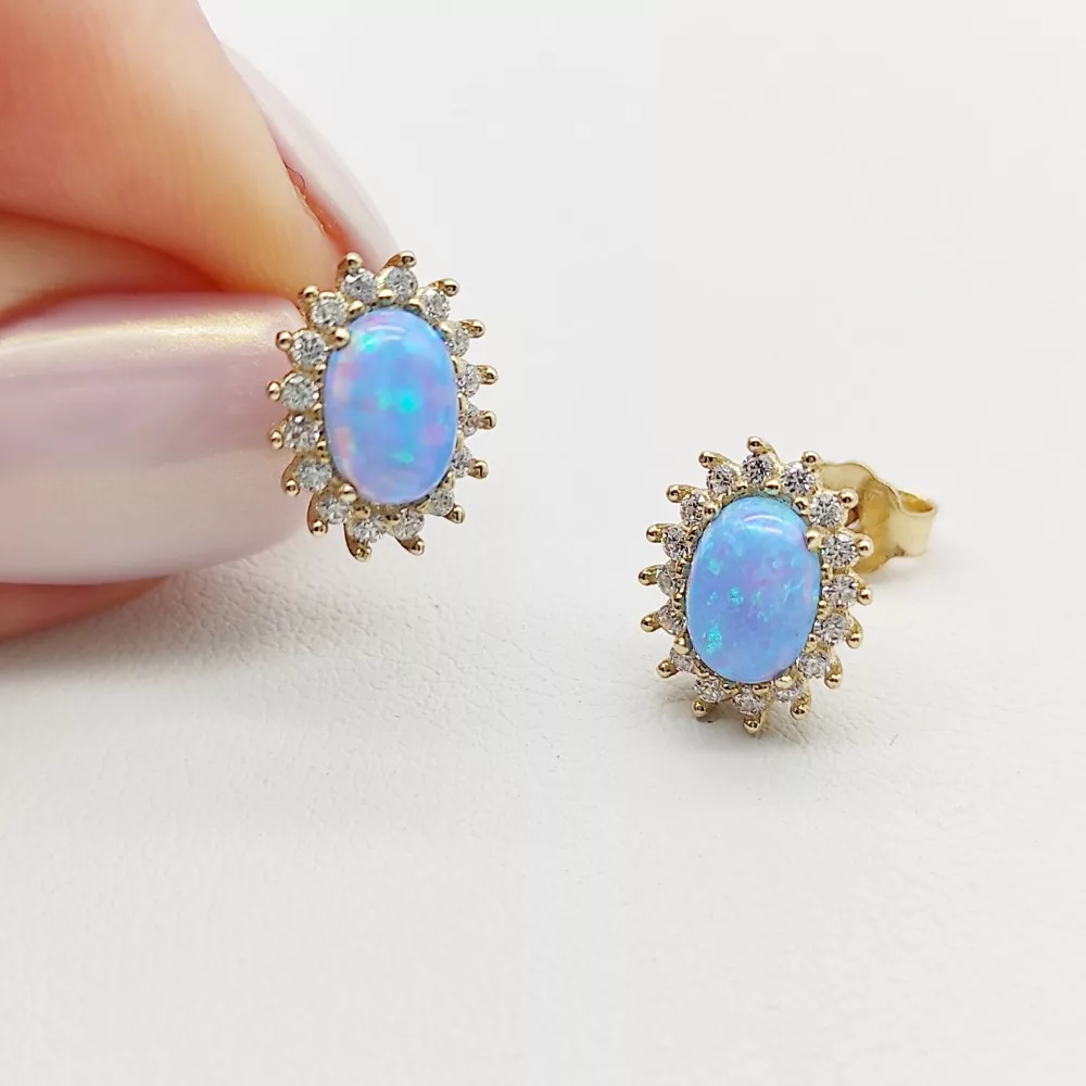 Sárga arany fülbevaló kék opállal