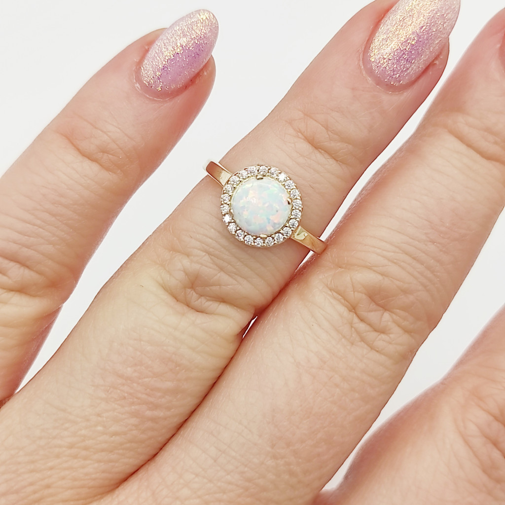 Sárga arany gyűrű fehér opállal