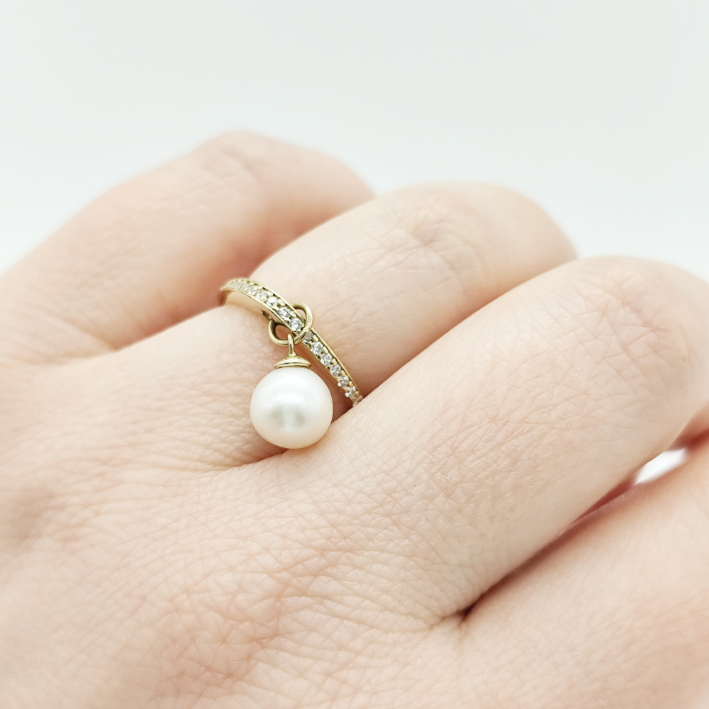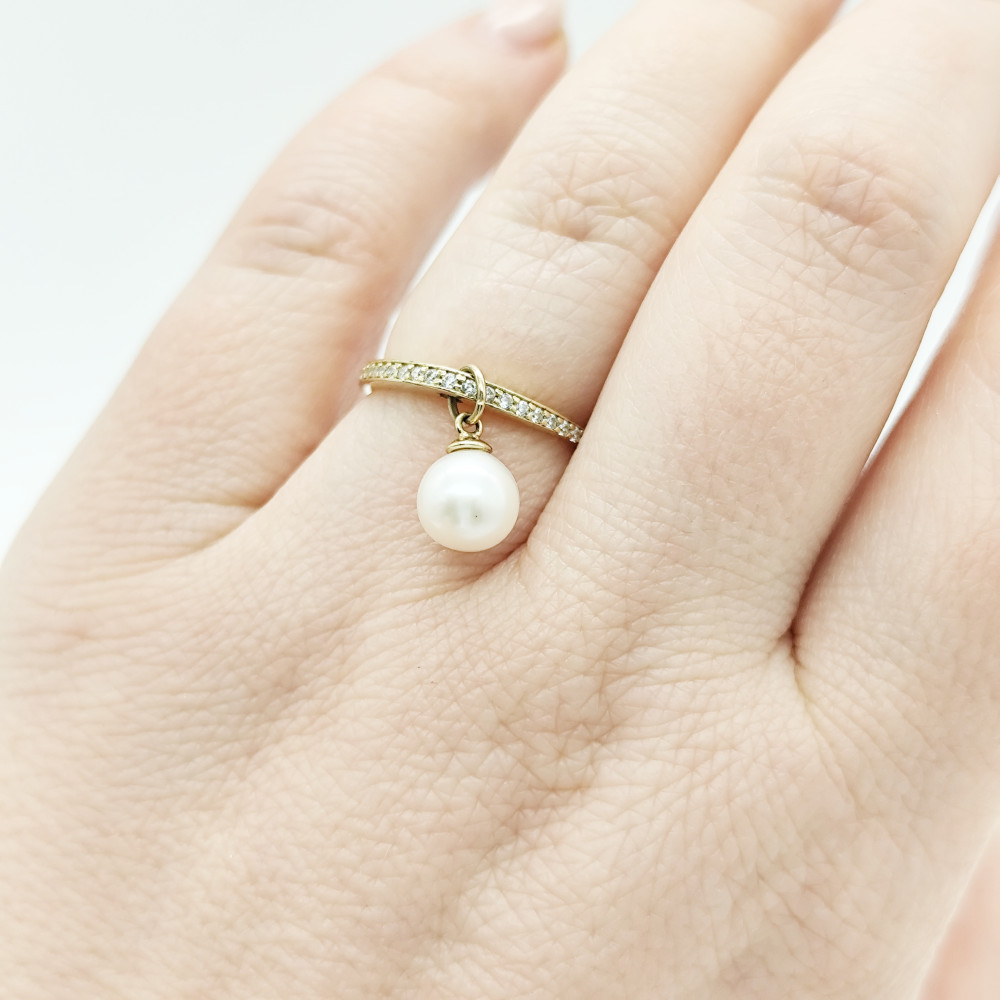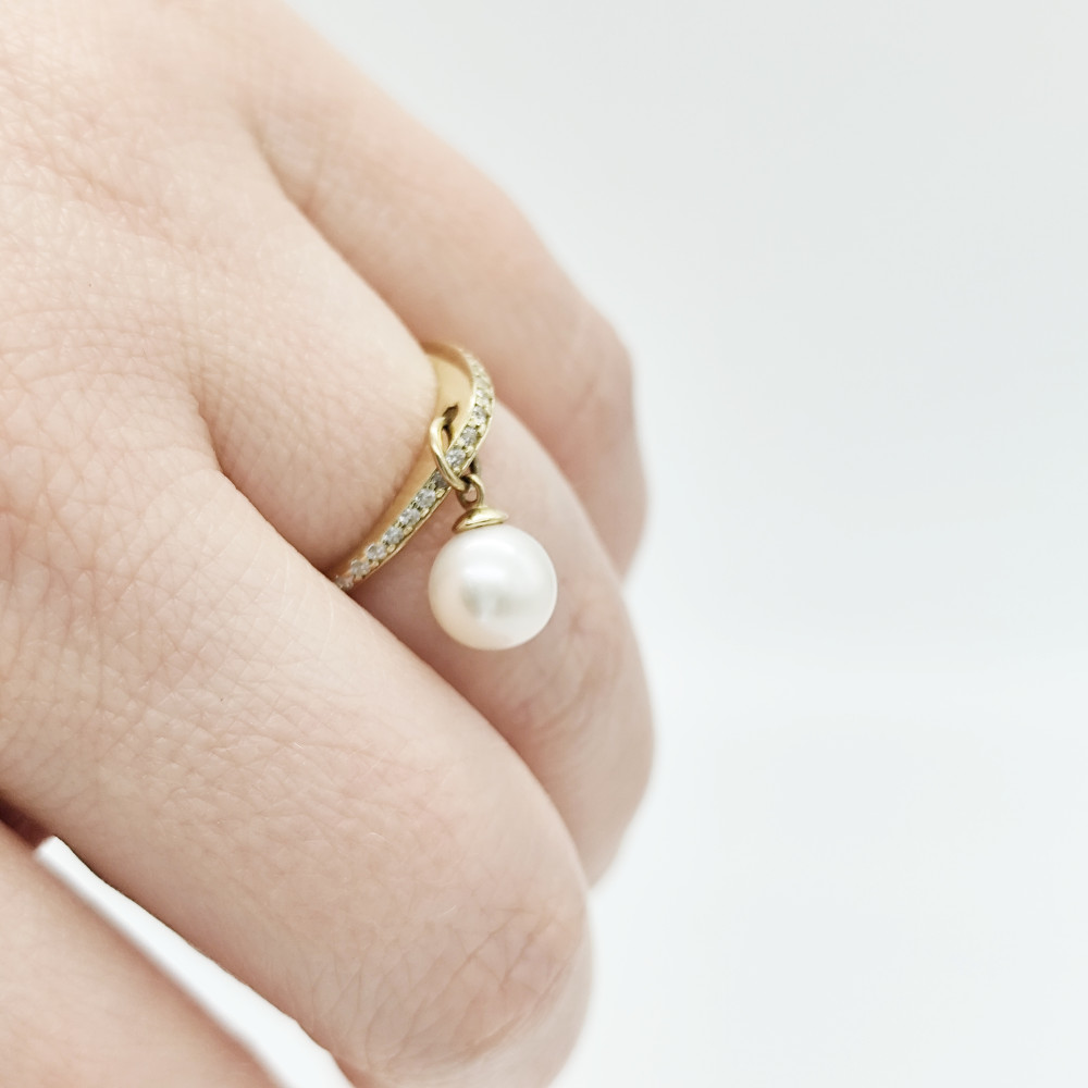 Sárga arany gyűrű gyönggyel és cirkóniákkal