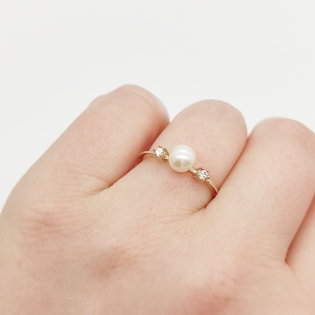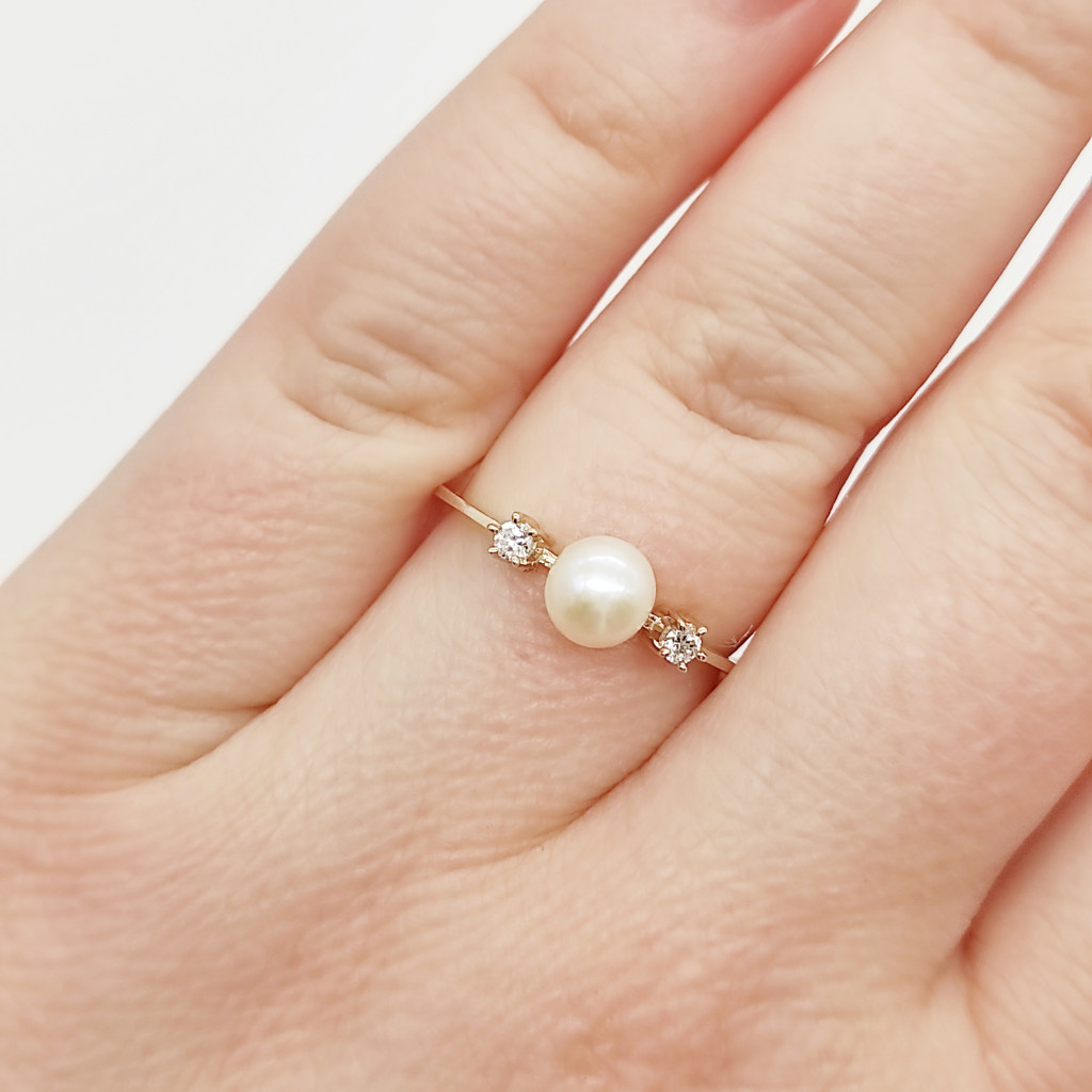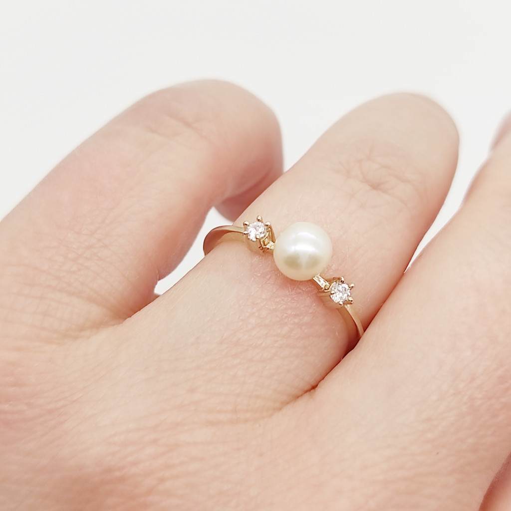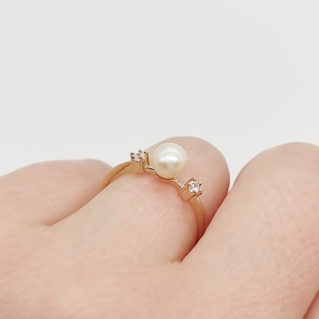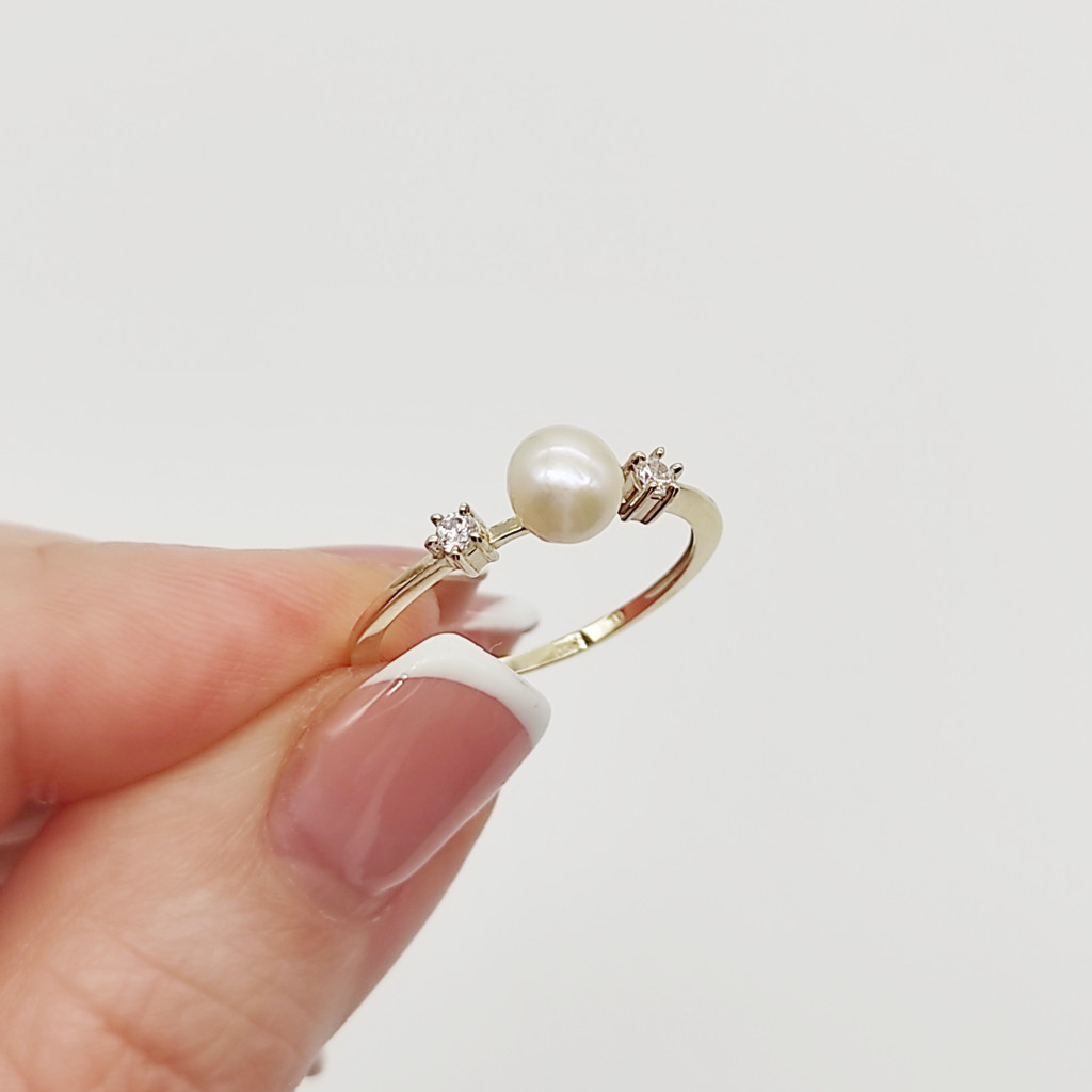 Sárga arany gyűrű gyönggyel és cirkóniával