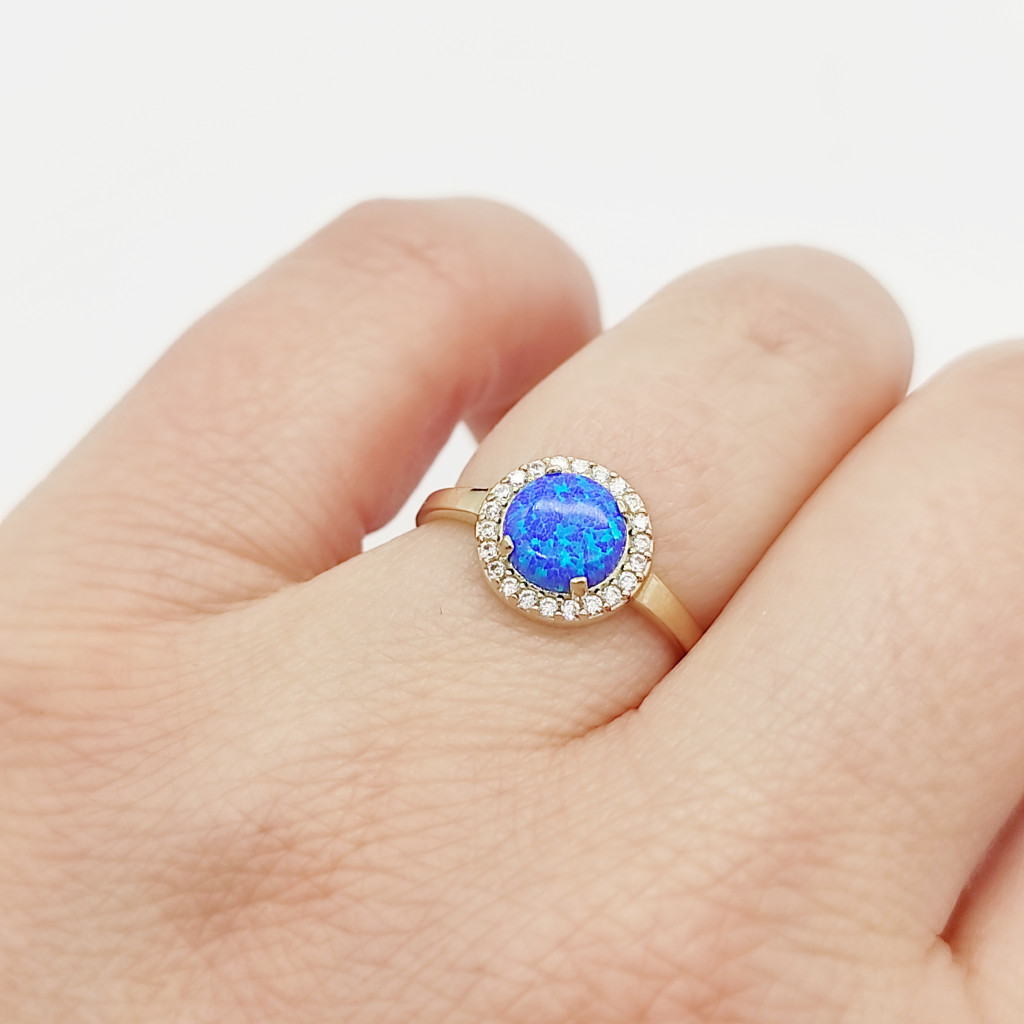 Sárga arany gyűrű kék opállal