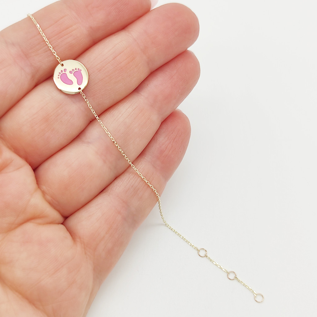 Sárga arany gyermek karlánc rózsaszín tappancsokkal