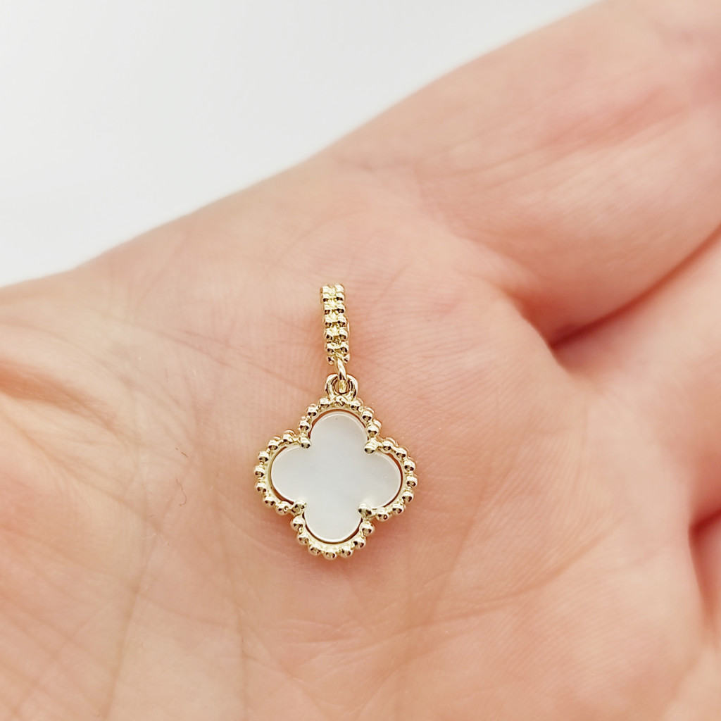 Sárga arany gyöngyház lóhere medál