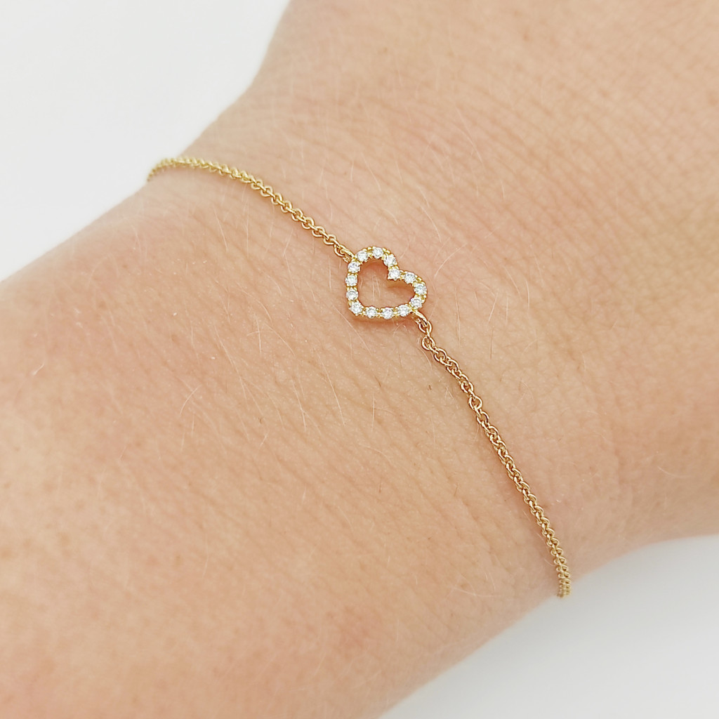 Sárga arany szívecskés karlánc gyémánttal