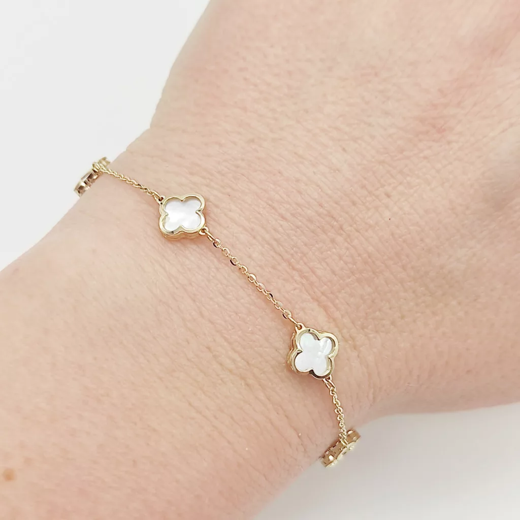 Sárga arany karlánc gyöngyház lóherékkel