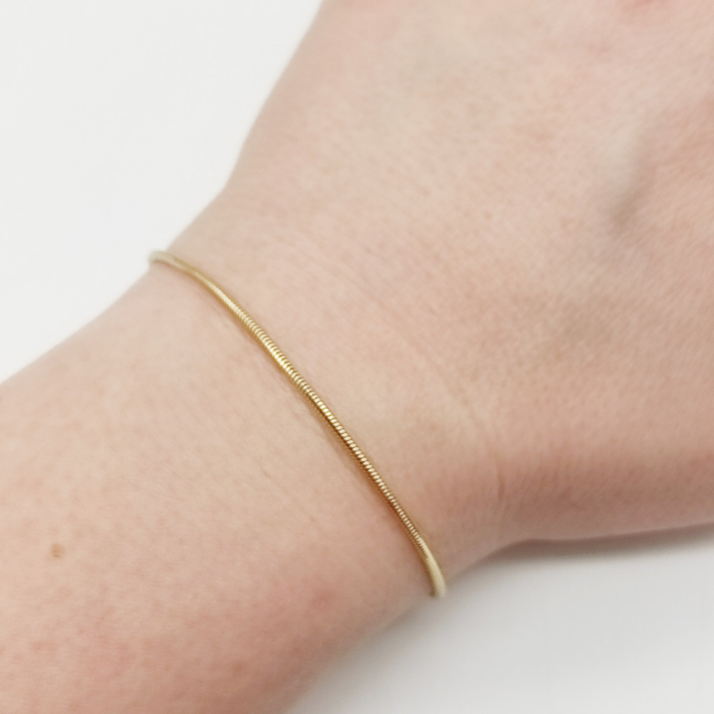 A klasszikus szemláncok mellett merev karperecek és modern formavilágú díszített karkötők is elérhetők, így könnyen választhatsz alkalomhoz, hangulathoz vagy akár ajándékozási szándékhoz igazodva. Minden darab 14 karátos aranyból készül, időtálló minőséget és eleganciát képviselve.