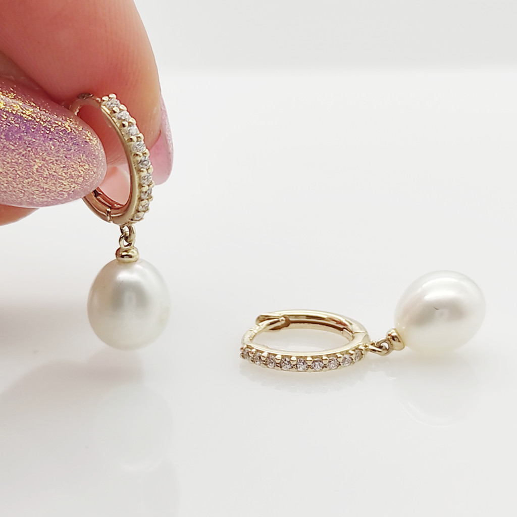 Sárga arany kis karika fülbevaló függő gyönggyel